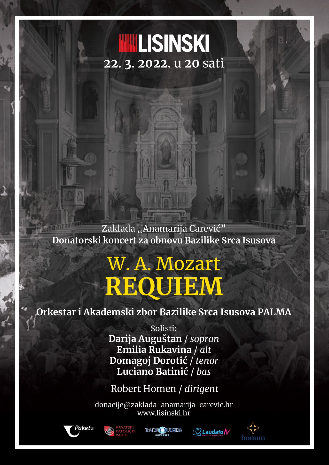 Ovo Mozartovo zadnje i nedovršeno djelo podsjetit će nas na krhkost i nestalnost trenutka kojega se svi dobro sjećamo iako su prošle dvije godine: naše neizvjesnosti i straha za vlastiti život te tužne činjenice da ga je naša nikad prežaljena djevojka Anamarija Carević uistinu i izgubila.