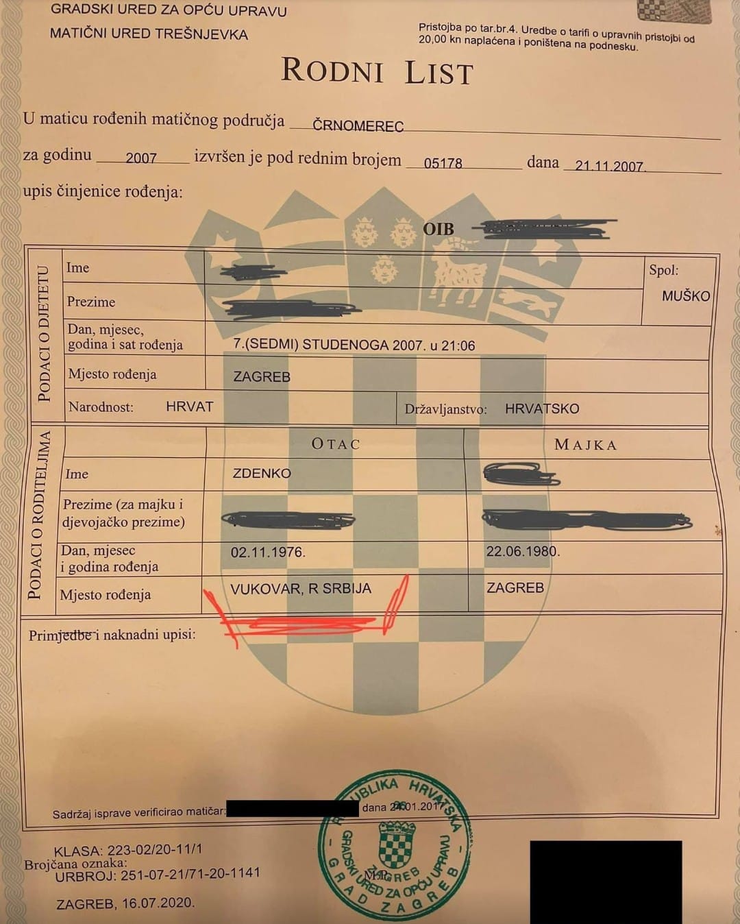 “Gradski ured za opću upravu – područni matični ured Trešnjevka izdao je ispravu s pogrešnim podacima, radi čega se najiskrenije ispričava povrijeđenoj sugrađanki. Nakon utvrđenih nepravilnosti protiv odgovornih službenika pokrenut je disciplinski postupak teške povrede službene dužnosti, a sugrađanki izdana odgovarajuća isprava. Ovim putem molimo sve cijenjene sugrađane da pregledaju svoje isprave i ukoliko uoče nepravilnosti da se jave u nadležne matične urede koji će te isprave prepraviti bez naknade o trošku nadležnog tijela. Još jednom se ispričavamo za sve moguće propuste”, stoji u objavi.