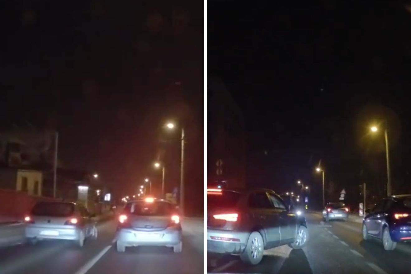 Prema snimci je vidljivo da je vozač pokušao skrenuti prema Malešnici i zbog nepropisne brzine i divljanja na cesti umalo skrivio prometnu nesreću.