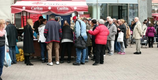 Sa željom da skrene pozornost javnosti za problem siromaštva i socijalne isključenosti, a povodom Svjetskog dana borbe protiv siromaštva Caritas Zagrebačke nadbiskupije danas je građanima besplatno dijelio jabuke i mandarine na glavnom gradskom trgu.