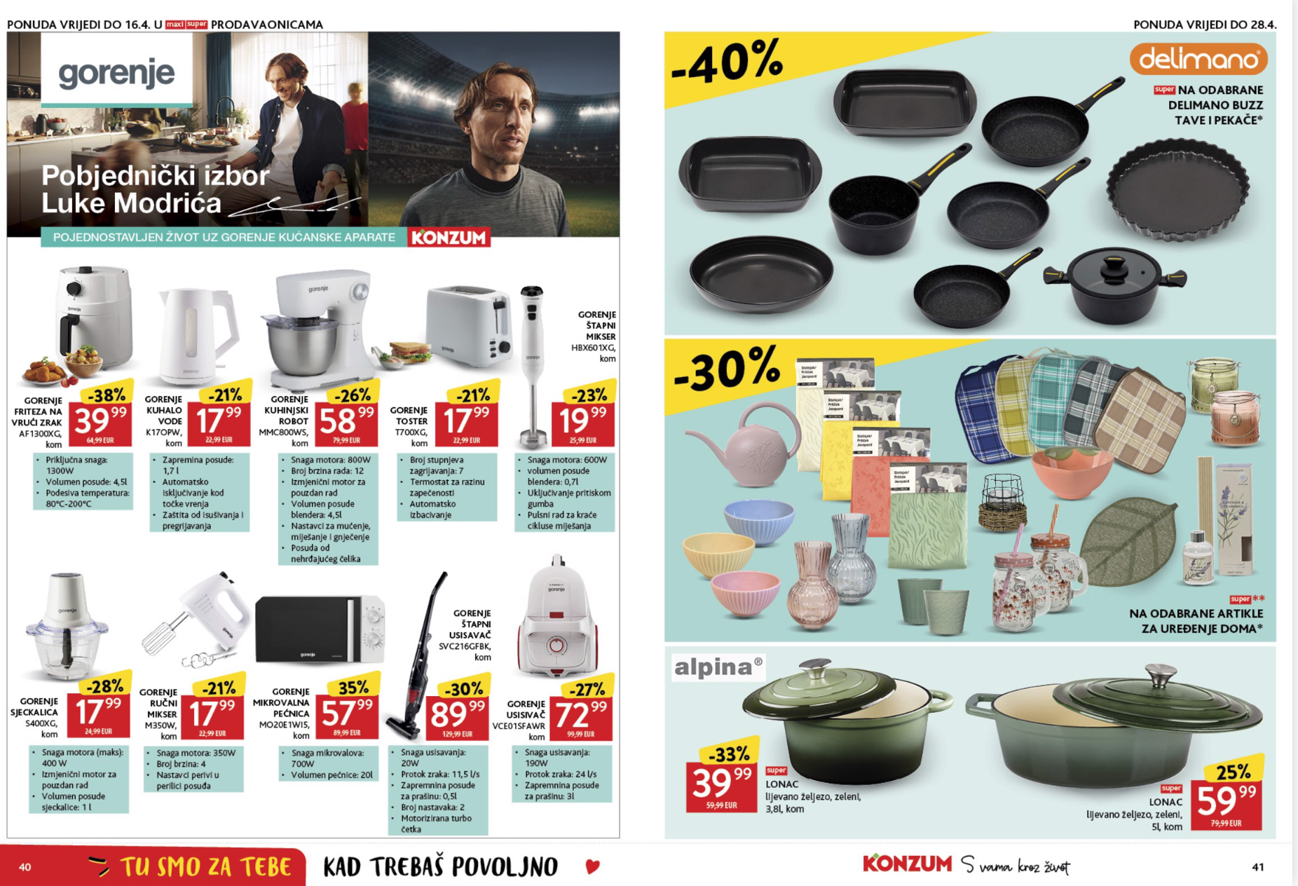 Naime, u najnovijem katalogu koji vrijedi od 15.4. po povoljnim cijenama mogu se naći brojni proizvodi, osim namirnica koje su snižene i do 30 posto, na popustu su i popularni kućanski aparati marke Gorenje čija akcija vrijedi od 16.4.