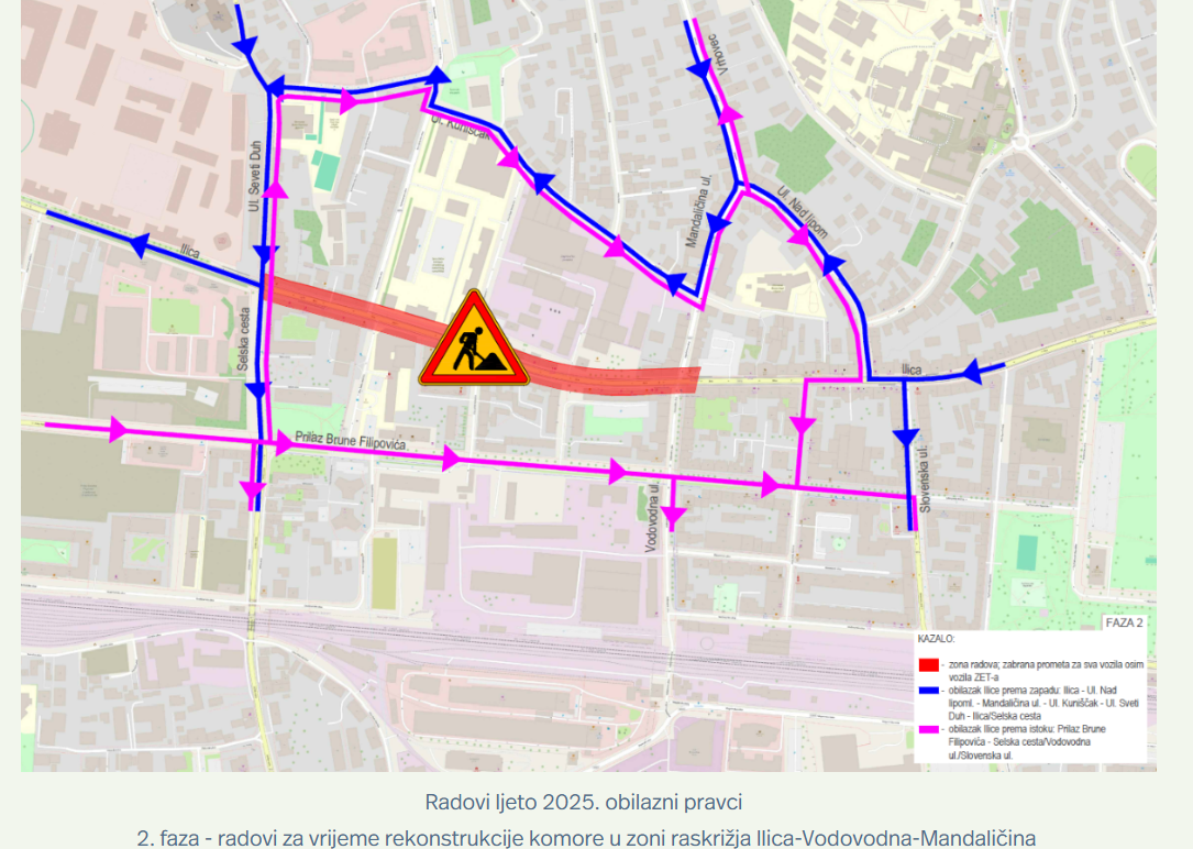 Novi cjevovod bit će premješten na sredinu i južnu stranu kolnika radi sigurnosti i lakšeg održavanja. Radovi će biti provedeni u dvije faze, prvo od Vodovodne do Selske, a zatim, za vrijeme rekonstrukcije komore, u zoni raskrižja Ilica-Vodovodna-Mandaličina.