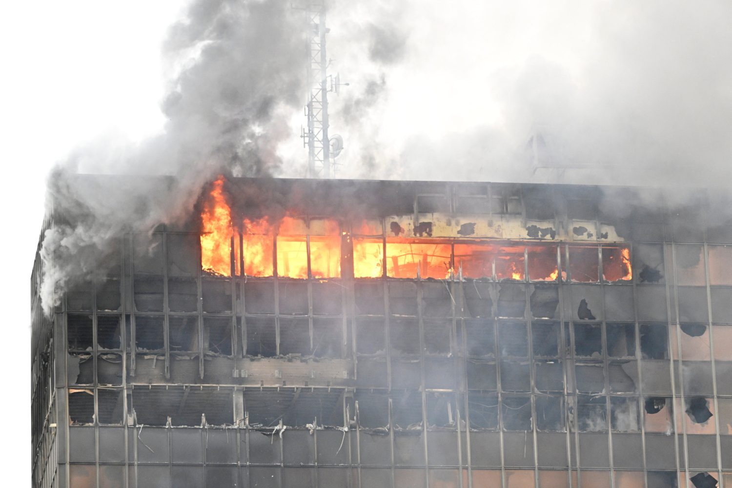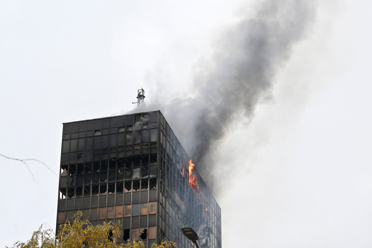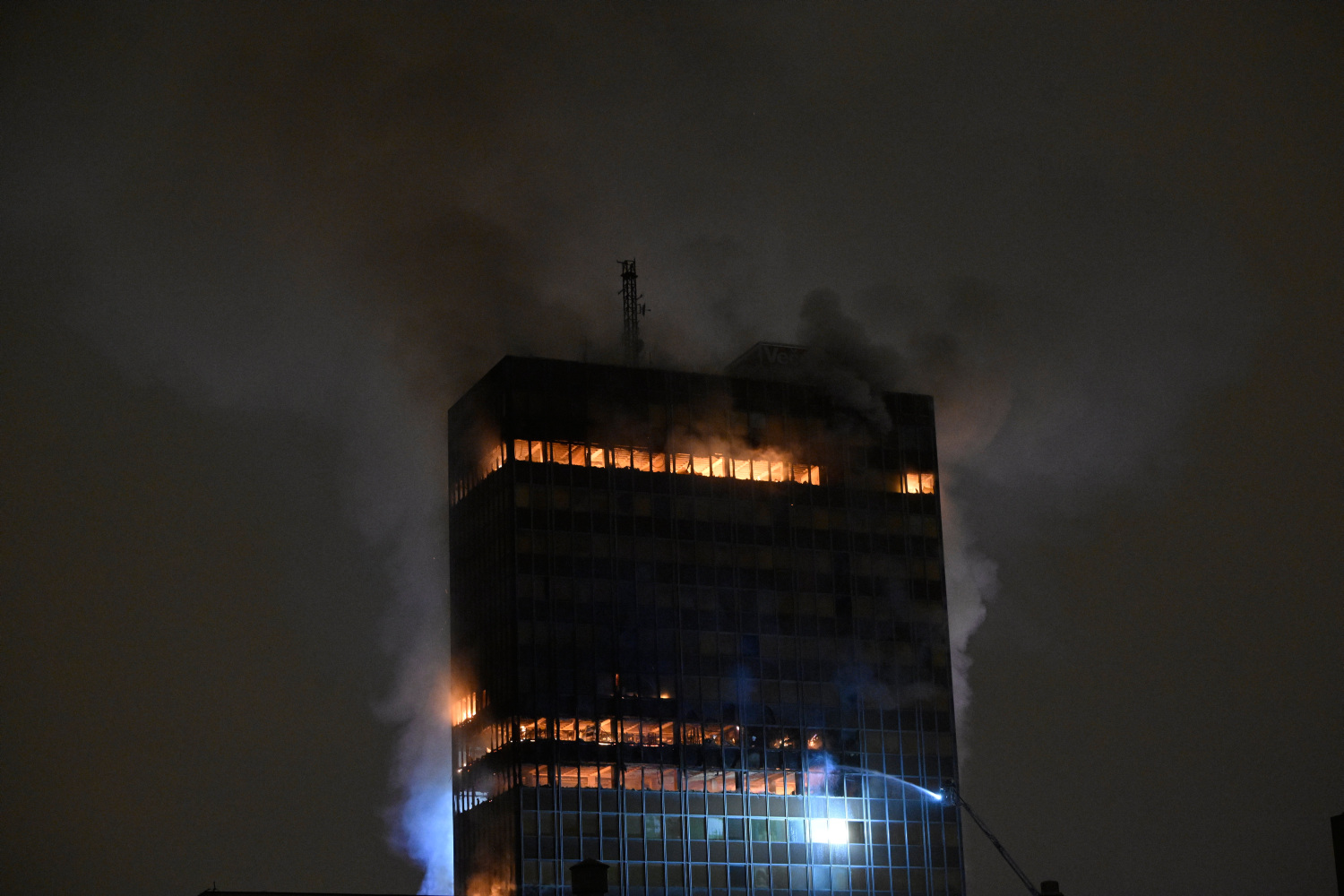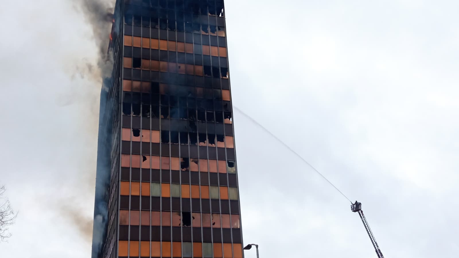 Ubrzo nakon početka intervencije požar se proširio na sve katove od 5. naviše, zbog čega su vatrogasci morali hitno napustiti objekt i prijeći na vanjsko gašenje. Vanjsko gašenje je bilo otežano zbog pada stakla i dijelova konstrukcije s viših katova.