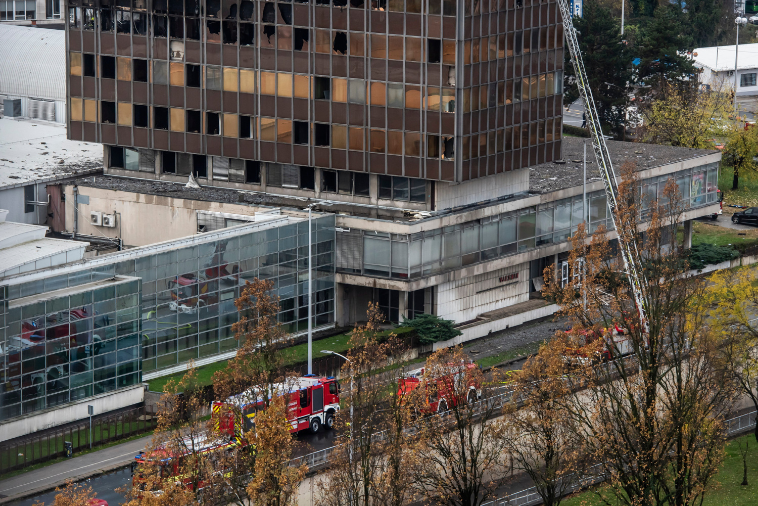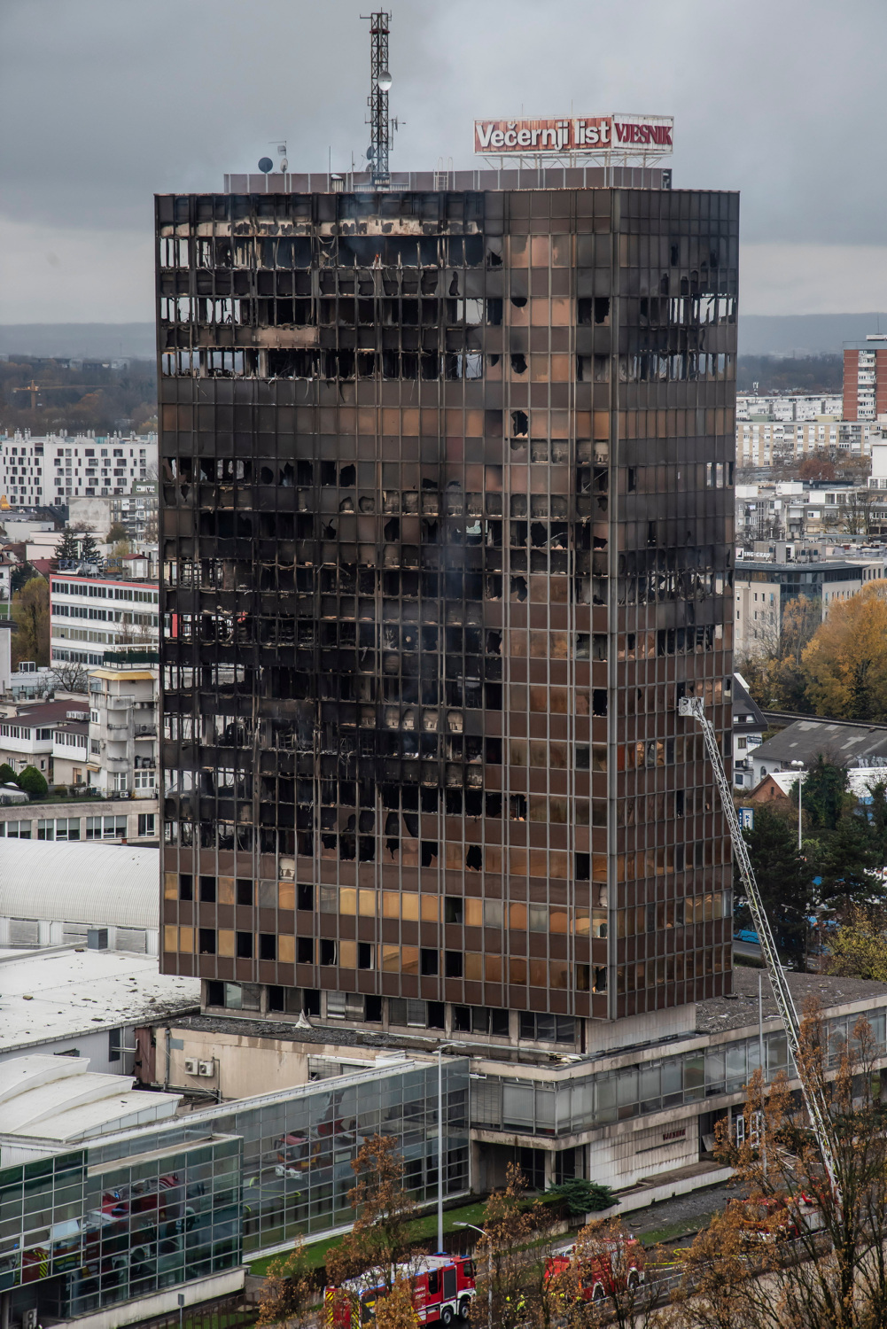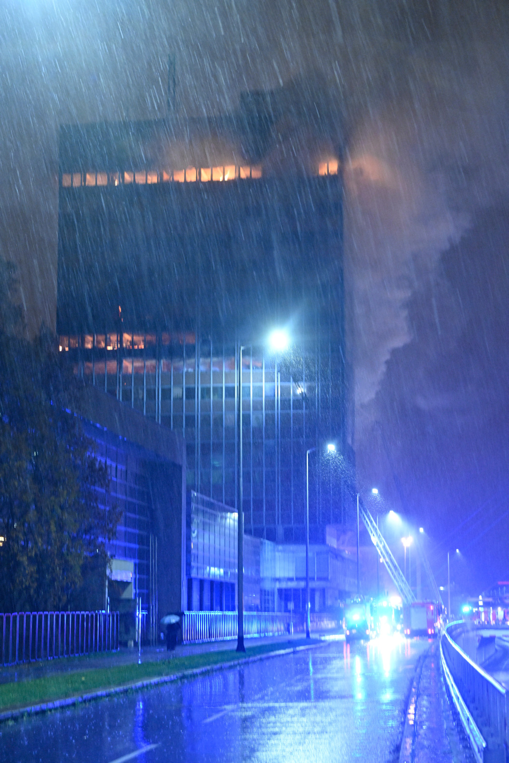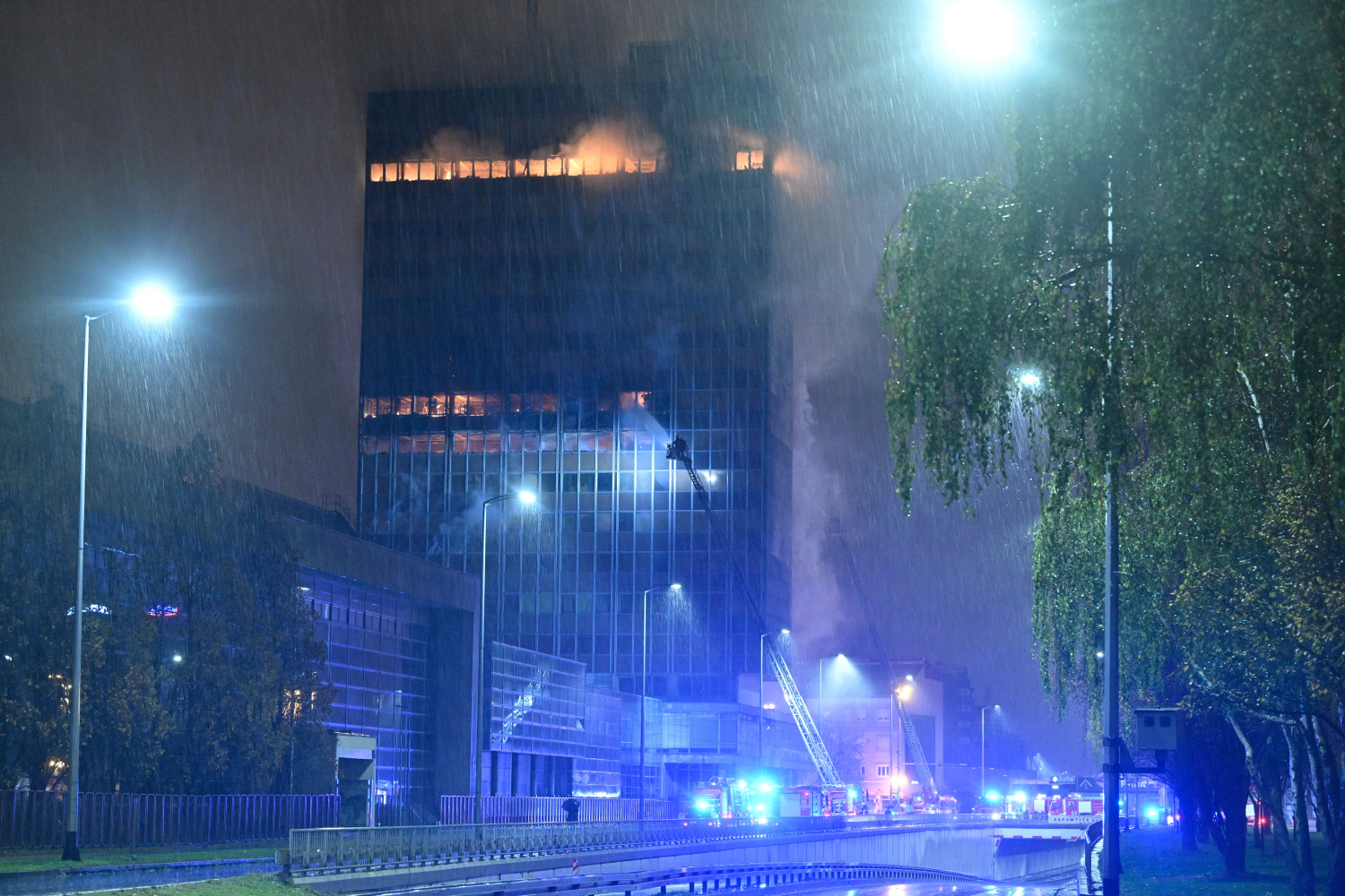 Pozar koji je izbio na predzadnjem katu Vjesnikova nebodera prosirio se na ostatak zgrade. Vatrogasci jos uvijek gase pozar.