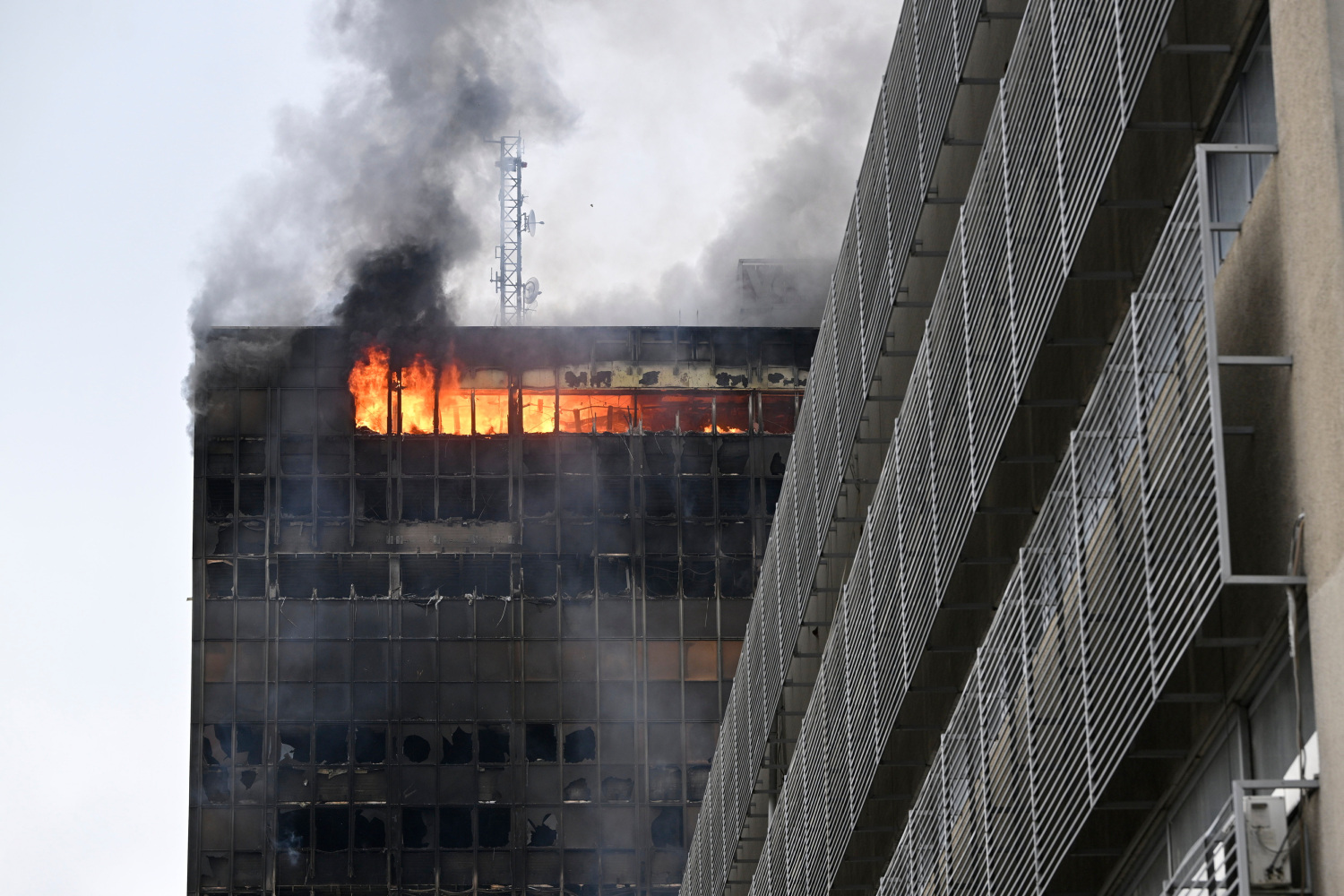 Zapovjednik Javne vatrogasne postrojbe (JVP) Grada Zagreba Siniša Jembrih rekao je Hini da požar još nije pogašen. “Nije pogašen, po nalogu statičara izlazimo van objekta”, izjavio je Jembrih. Objasnio je da to znači da vatrogasci više ne smiju gasiti požar iznutra u neboderu, već požar smiju gasiti samo izvana. Rekao je da su na požarištu sada izdimljavanja te da ne zna koliko će vatrogascima trebati da požar ugase.