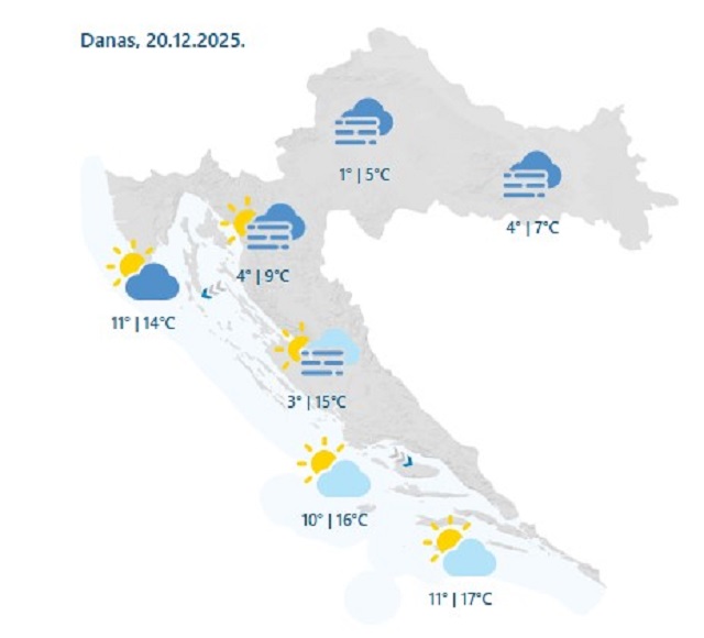 U subotu se u nizinskoj Hrvatskoj očekuje pretežno oblačno vrijeme uz čestu maglu, mjestimice i rosulju. Na sunčanijem sjevernom Jadranu te u gorju moguća je i slaba kiša, dok će u Dalmaciji prevladavati sunčano vrijeme. Prema trenutačnim prognostičkim modelima, slične vremenske prilike zadržat će se i u nedjelju te početkom novog tjedna. U nizinama, primorskoj i gorskoj Hrvatskoj bit će sve oblačnije i danju hladnije, dok će na Jadranu jutra biti toplija zbog jačanja bure na sjevernom dijelu te juga na srednjem i južnom Jadranu.