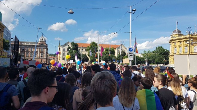 Pride je počeo u 15 sati od Mimare, a ubrzo su u povorci krenuli i prema Trgu bana Jelačića, na koji su stigli u 16.40 sati. Tamo je, pak, pred njih stao čovjek sa slikom Isusa, ali bez problema je uklonjen.