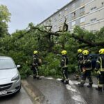U zagrebačkom naselju Trnskom u utorak poslijepodne srušilo se veliko stablo. Palo je na nekoliko automobila, od kojih je jedan bio u vožnji i u kojemu je ostala zarobljena žena.