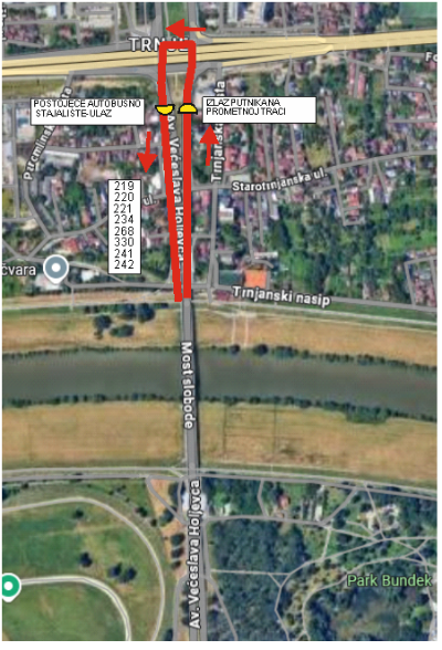 Linija Savski most – Ljubljanica prometovat će trasom Savski most – (uz peron 5 linije 110) – Jarunska – Ulica Marijana Haberlea – Horvaćanska cesta – Selska cesta – Zagrebačka avenija – Ljubljanica (peron 1 linije 114) – Zagrebačka avenija – Selska cesta – Savski most. Linija će se zaustavljati na svim usputnim stajalištima. Polasci svakih 15 minuta.