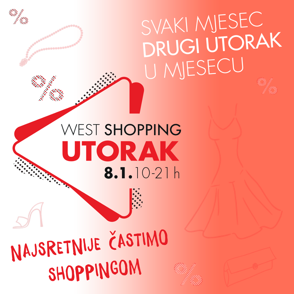 Westgate ponovno donosi neodoljive popuste. Sutra će se, u utorak 8.1, održati prvi ovogodišnji West Shopping Utorak koji donosi odlične popuste. Više informacija pronađite na stranici WESTGATE Shopping City.
