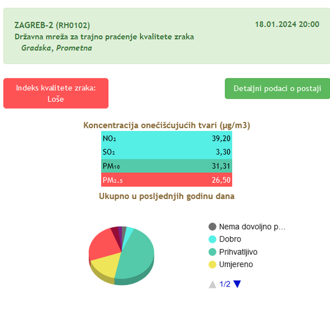 Prema službenim podacima, vidljivo je da je u većini krajeva na području kontinentalne Hrvatske u siječnju 2024. povećana emisija PM2,5 što ukazuje upravo na učinak meteoroloških čimbenika. Poboljšanjem vremenskih uvjeta poboljšat će se i kvaliteta zraka, ali i dalje se mogu očekivati pojačane koncentracije lebdećih čestica s obzirom na to da smo u sezoni grijanja.