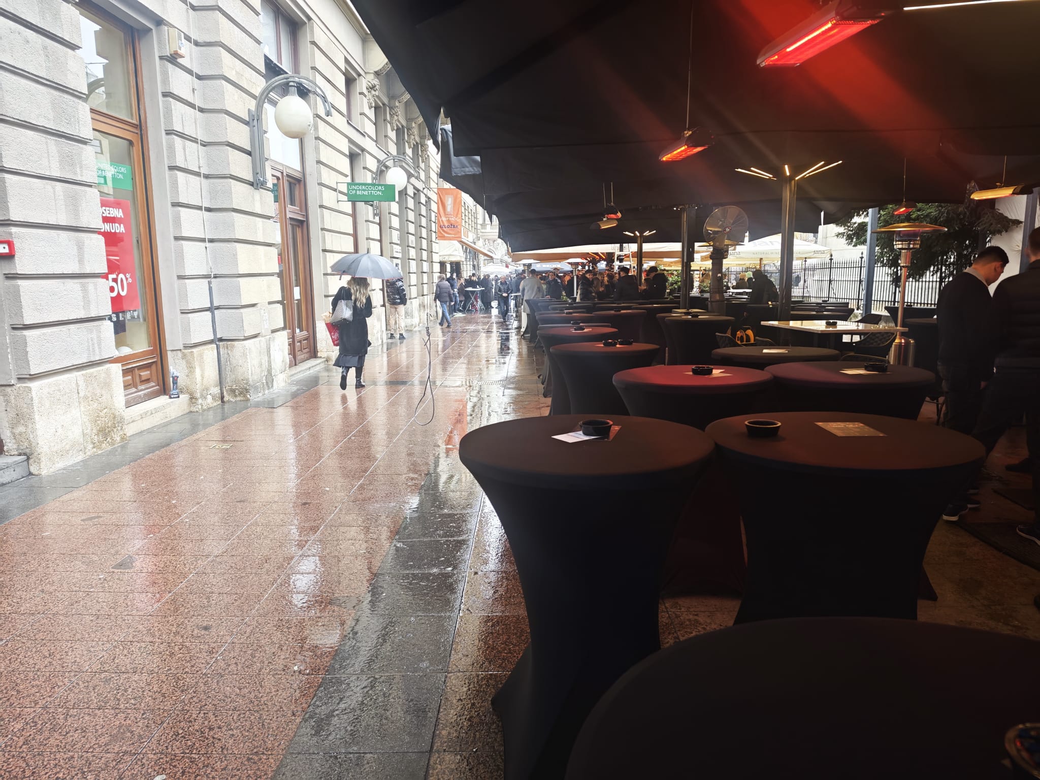 Ugostitelji koriste sve što im može poslužiti – suncobrane, kišobrane, cerade, tende i slično. Međutim, brojna ekipa se okupila, bez obzira na kišu. Do centra se zaputio i jedan Zagrepčanin, koji nam je opisao atmosferu.