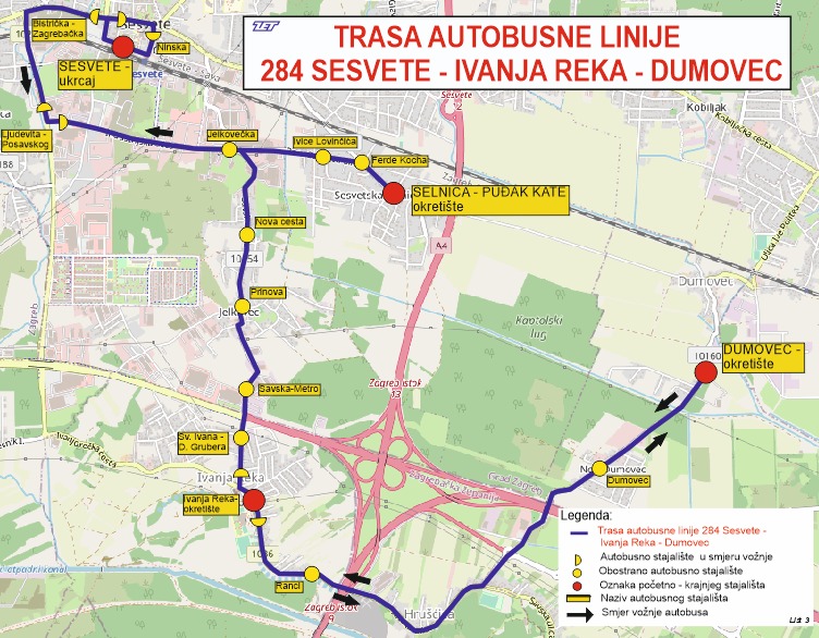 Od ponedjeljka, 8. siječnja, autobusna linija 284 (Sesvete – Ivanja Reka), u pojedinim polascima radnim danima bit će produžena do okretišta u Dumovcu.