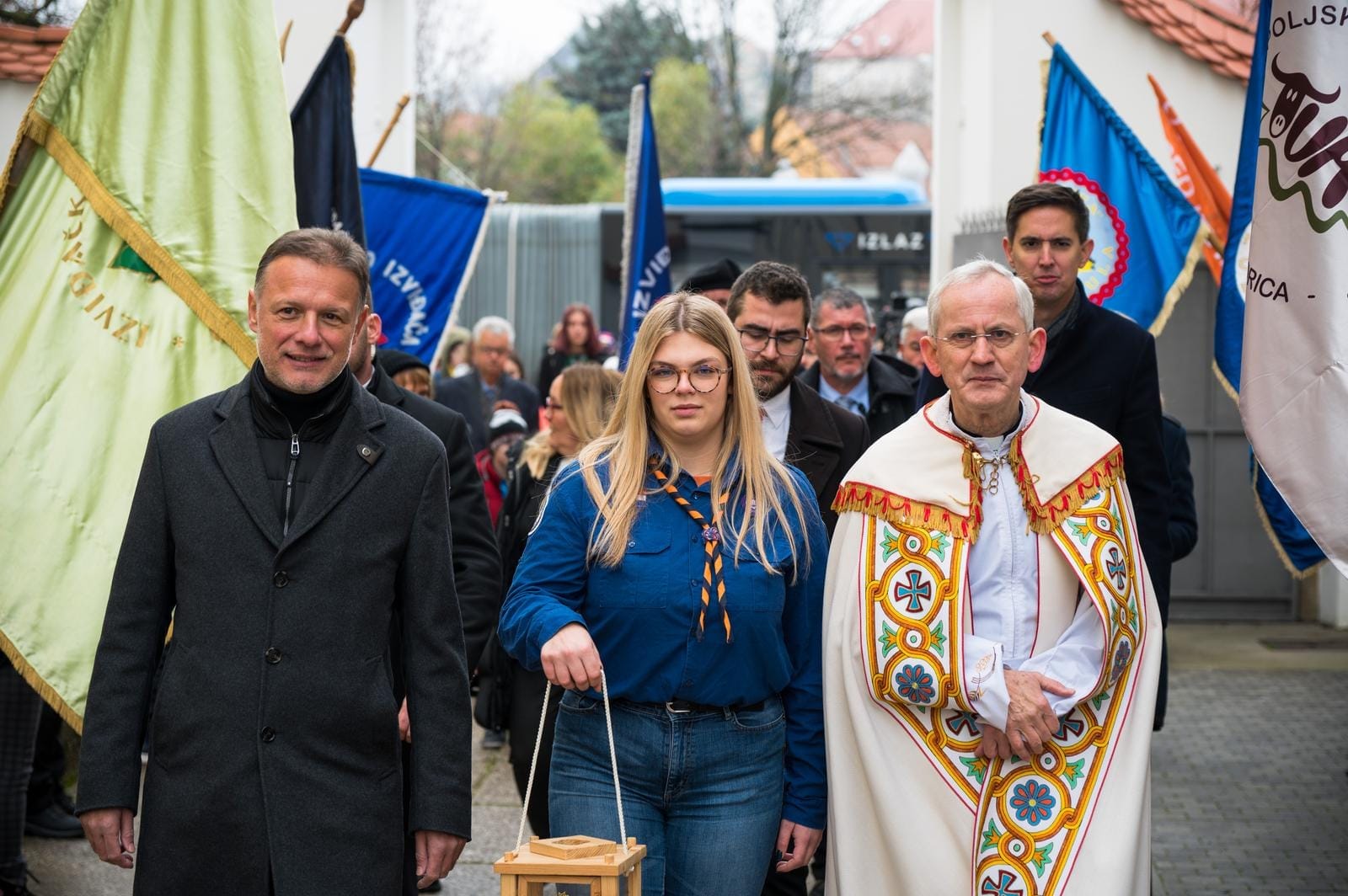 Svečana povorka u kojoj je bilo oko 200 izviđača iz svih dijelova Hrvatske, krenula je s Europskog trga, a na prostoru ispred katedrale su je dočekali predsjednik Sabora Gordan Jandroković i kanonik Prvostolnog kaptola zagrebačkog Josip Kuhtić.