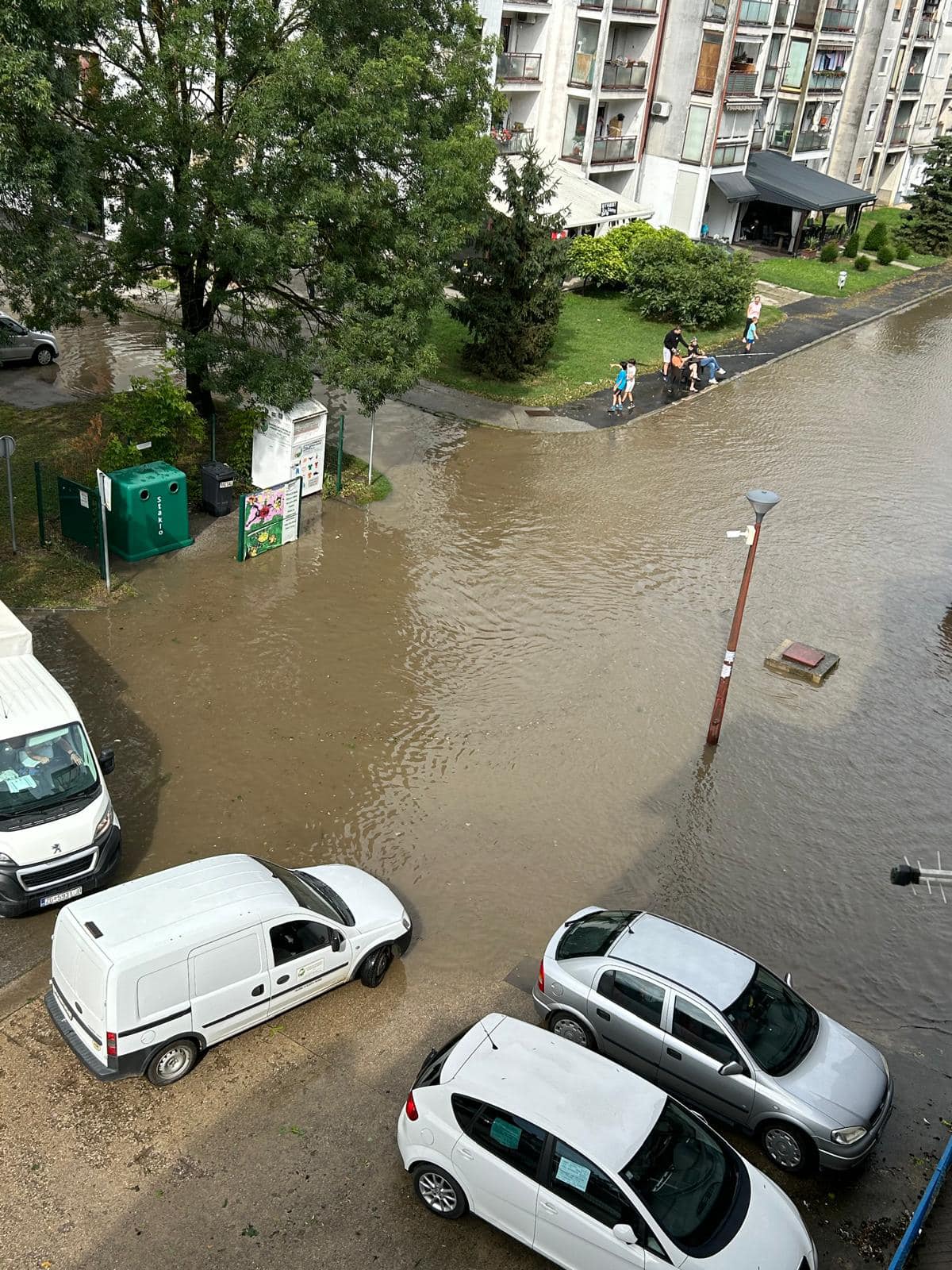 Voda je stajala u obliku jezera nekih sat i pol dok nisu stigli vatrogasci i pročistili šahte od nanešenog blata, pa je tada voda počela otjecati. Trenutačno više nema vode”, ispričao nam je naš čitatelj iz Dugog Sela koji je zabilježio “ribolovce”.