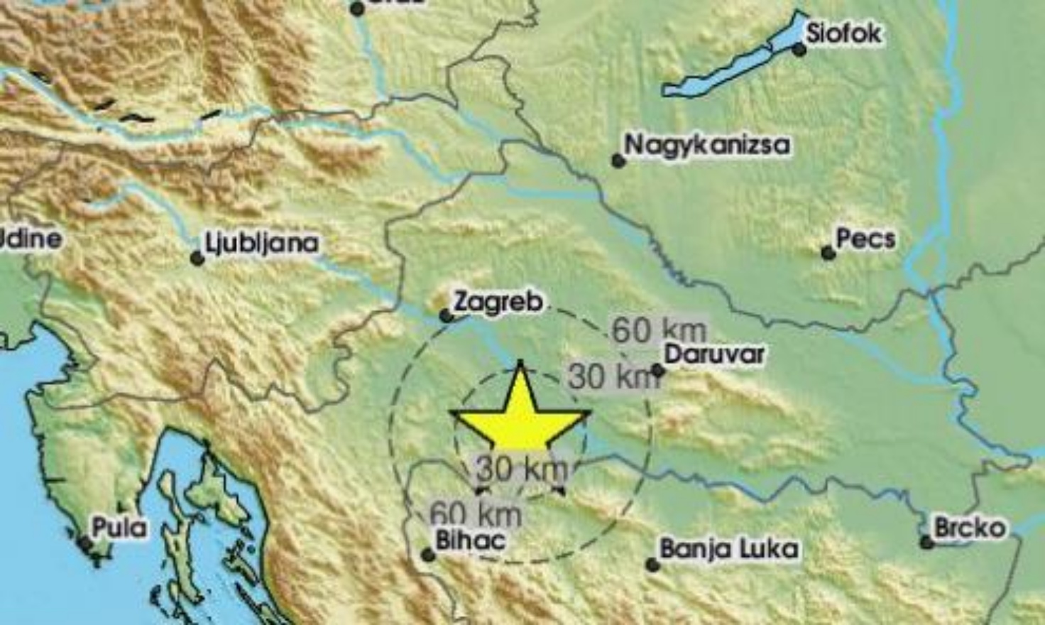 Potres magnitude 2.8 po Richteru dogodio se na dubini od 9 kilometara, oko 64 kilometra jugoistočno od Zagreba i 16 kilometara jugoistočno od Siska.