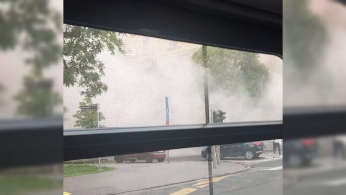 Naime, snimatelj agencije Cropix snimio je ogromni oblak prašine koji je nastao nakon rušenja i to iz tramvaja.