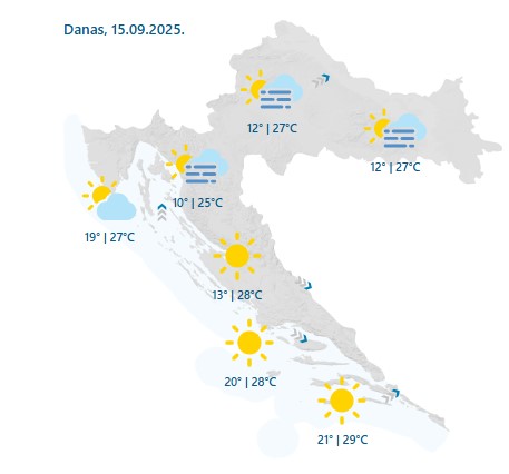 U novi Hrvatska kreće sa sunčanim vremenom. Prema novim prognozama temperature će malo porasti, no svježa jutra na kopnu, ponegdje uz maglu, mnoge bi mogla zavarati. Maglovita jutra polako postaju sve češća kako se bliži jesen pa se vozači upozoravaju na dodatan oprez prilikom vožnje u jutarnjim satima kad se putuje na posao.