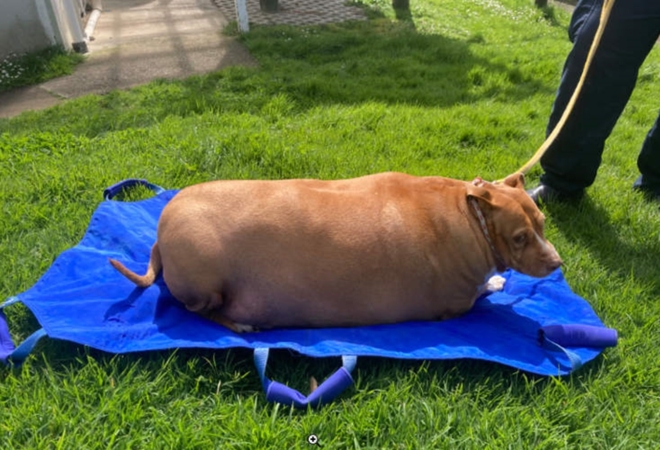 Nuggi, koji je u trenutku spašavanja težio nevjerojatnih 53,7 kilograma, bio je toliko predebeo da je jedva mogao hodati. Kada su policijski službenici iz Društva za sprječavanje okrutnosti prema životinjama (SPCA) stigli na lice mjesta u listopadu 2021., zatekli su psa čije su se noge tresle pod težinom njegovog masivnog tijela. Nuggi je morao zastati tri puta kako bi došao do daha dok je hodao samo deset metara do spasilačkog vozila.