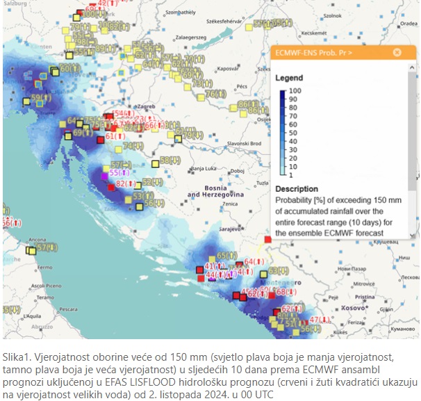 Velika količina oborine u kratko vrijeme može prouzročiti bujične i urbane poplave počevši od danas u Istri, Gorskom kotaru i dalje uz granicu sa Slovenijom. Sa širenjem oborina danas, tijekom sljedeće noći i dana i mogućnost pojava bujica se širi na Liku, Dalmaciju i zaleđe. P