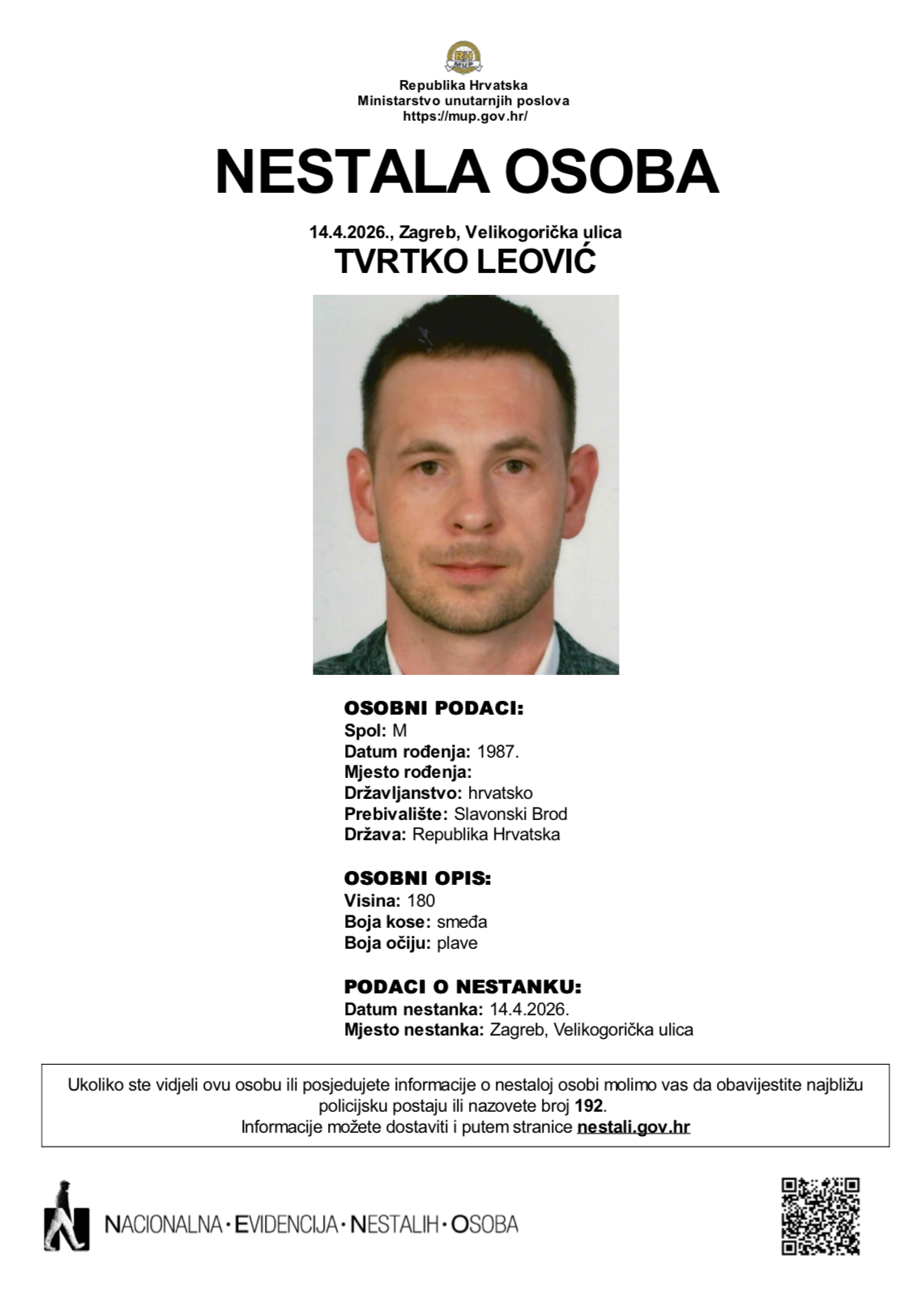 1. Ako ste prepoznali osobu ili je vidjeli u blizini Meridijana, Gračana, žičare ili na Sljemenu nakon 13 sati, molimo javite nam se.