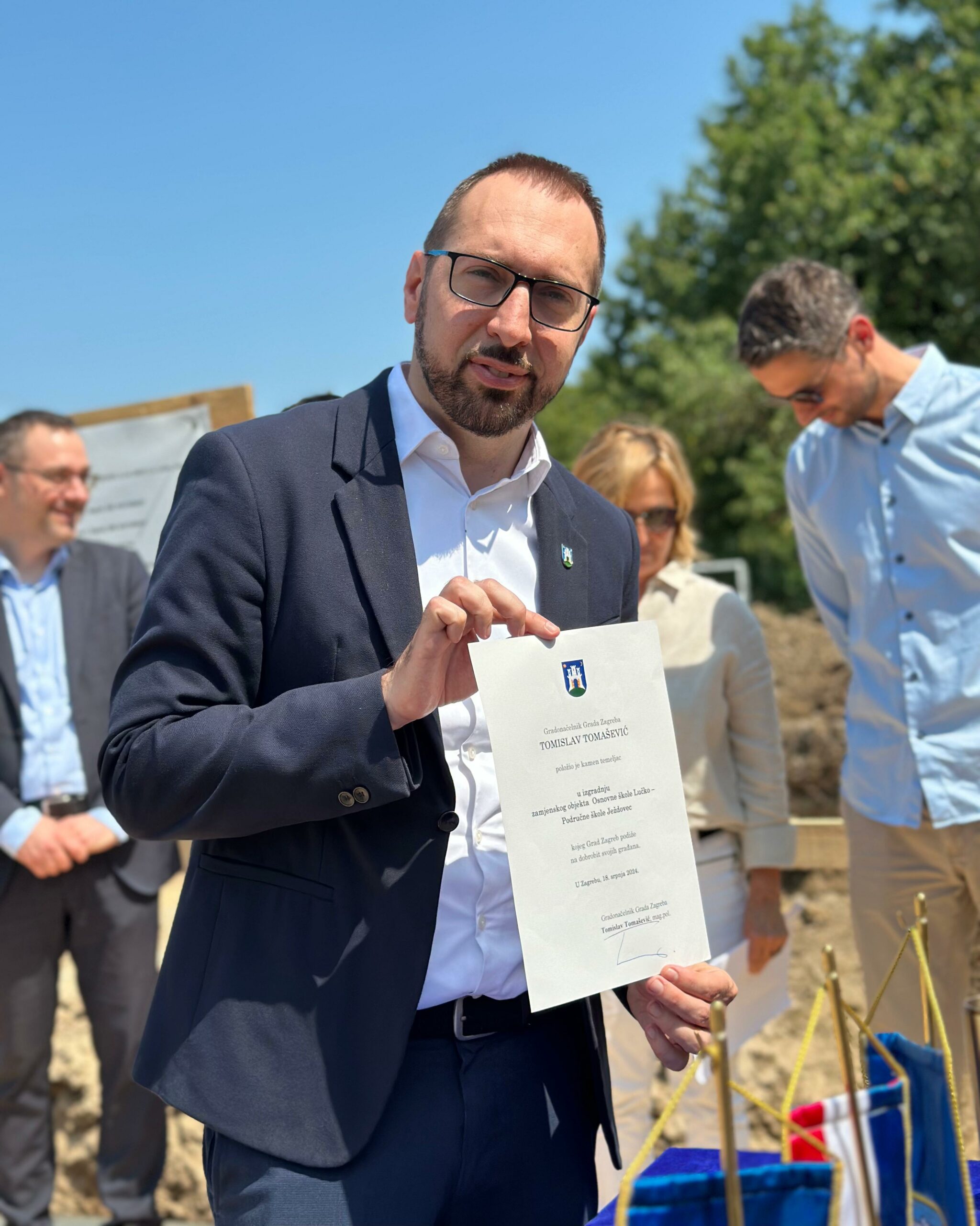 Gradonačelnik Grada Zagreba Tomislav Tomašević položio je danas kamen temeljac za gradnju nove područne škole u Ježdovcu koja će djelovati u sklopu Osnovne škole Lučko. Radi se o izgradnji već 19. školskog objekta u mandatu ove gradske uprave, što je nezapamćeno ulaganje u škole u povijesti Grada Zagreba.