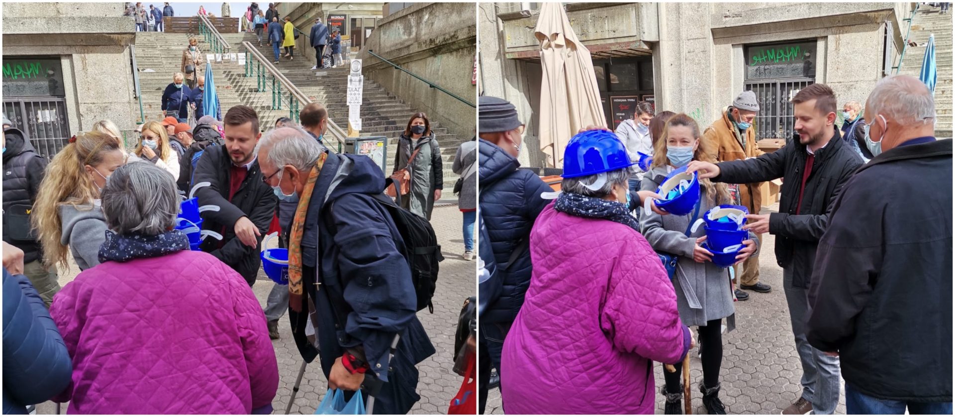 Davor Nađi, kandidat za gradonačelnika Zagreba i stranka FOKUS danas su građanima dijelili zaštitne kacige.