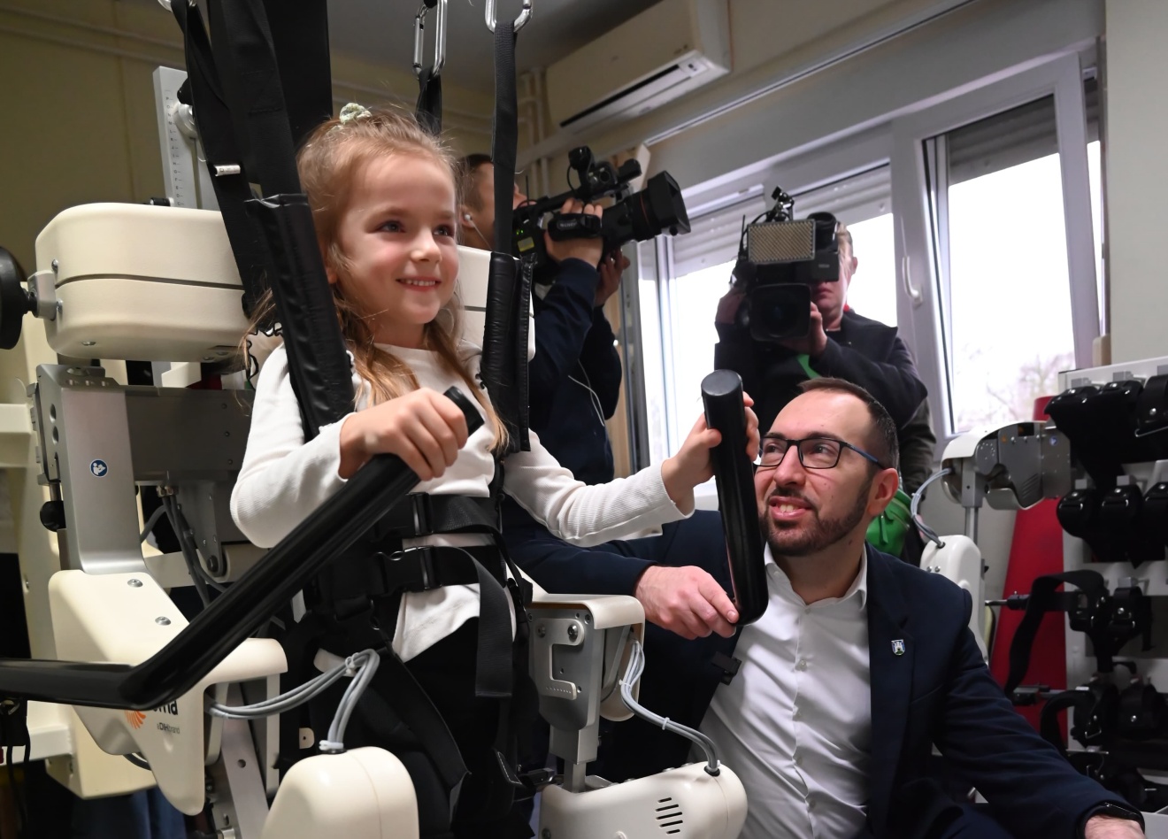 Rehabilitacijski robot, koji će uz postojećih sedam robotskih uređaja na Goljaku, omogućiti pružanje pravovremene terapije većem broju djece s neuromotoričkim oštećenjima, danas su predstavili Tomislav Tomašević, gradonačelnik Grada Zagreba te zamjenici gradonačelnika Danijela Dolenec i Luka Korlaet.