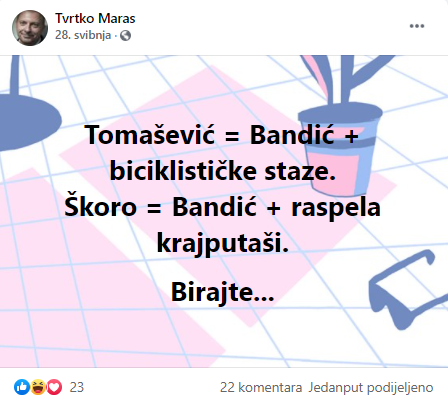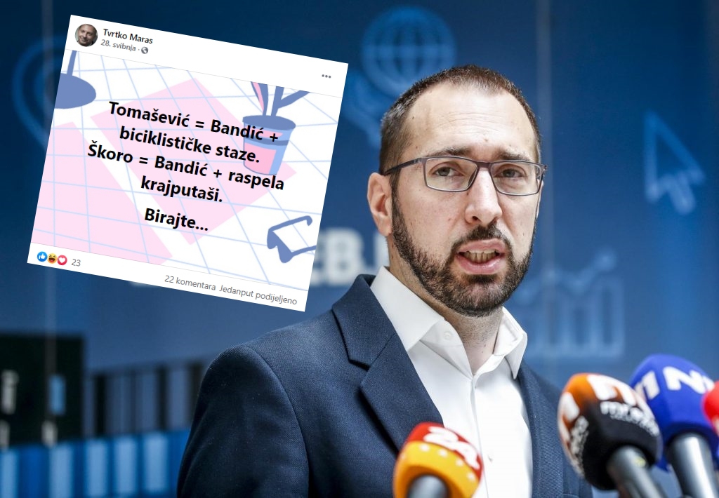 Naime, gospodin Maras, vlasnik Progmar istraživanja, na društvenim mrežama objavio je nekoliko šala na račun zagrebačkog gradonačelnika, a posebno se izdvaja formula “Tomašević = Bandić + biciklističke staze”.