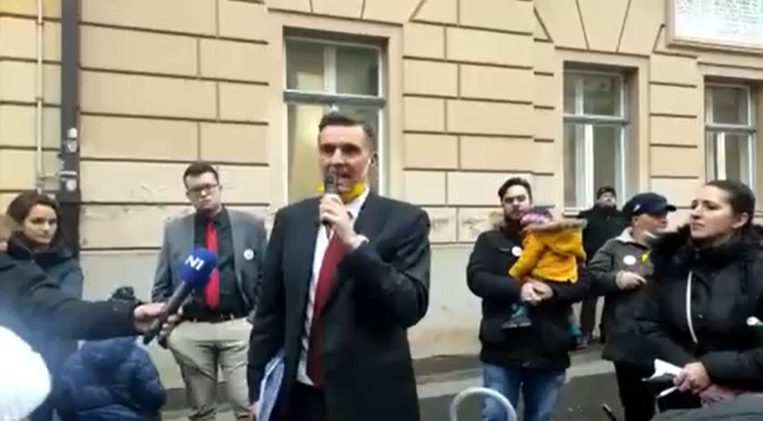 Pred Skupštinom se okupilo dvadesetak prosvjednika, a među podržavateljima uoči sjednice su viđeni saborska zastupnica Karolina Vidović Krišto, potpredsjednik Gradske skupštine Igor Peternel (DP) i nezavisni zastupnik Miroslav Škoro. U trenutku kada je Škoro davao izjavu za novinare prosvjednice su zapjevale njegovu pjesmu ”Sude mi”.