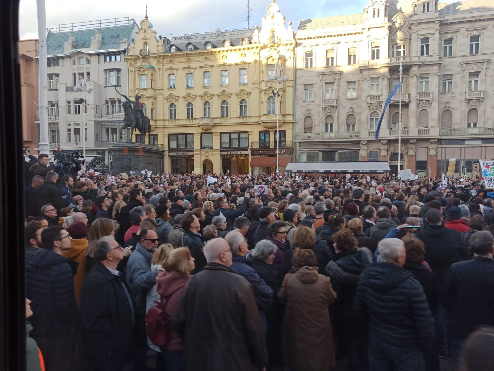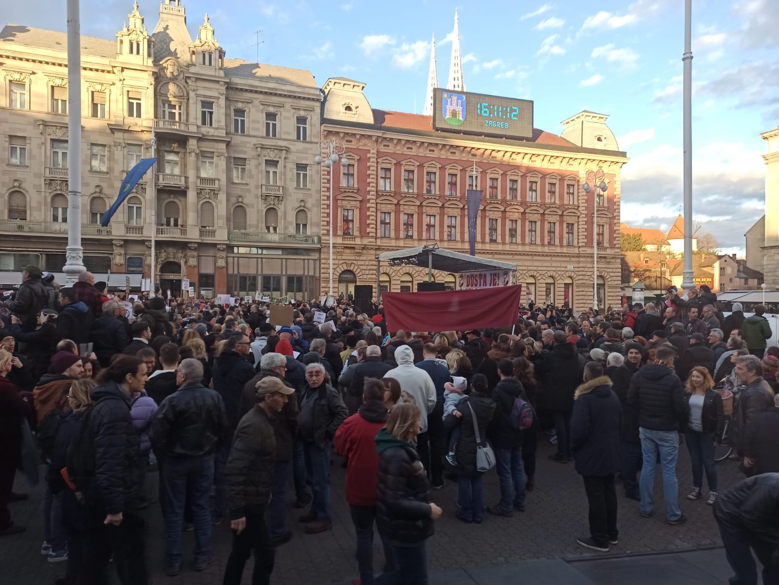 Na Trgu bana Jelačića je više od 1000 ljudi, znatno više nego na prošlom prosvjedu, a dio njih još dolazi. Od posljednjeg se prosvjeda današnji razlikuje i po tome što je tu i pozornica.