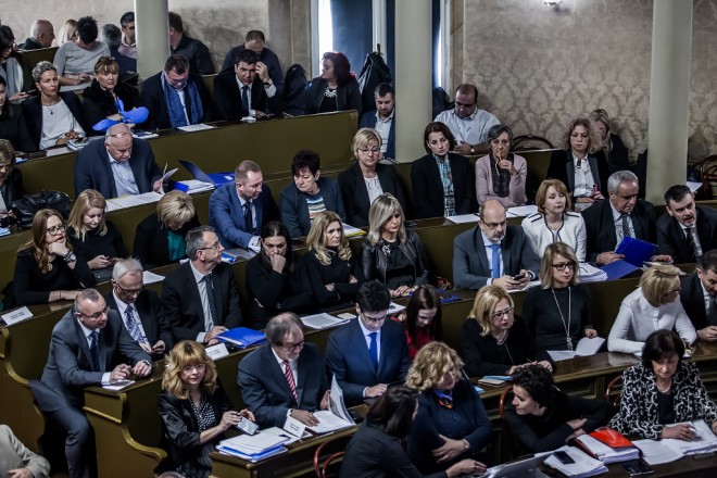 Trinaesta sjednica zagrebačke Gradske skupštine na kojoj bi zastupnici trebali odlučiti i hoće li usvojiti prijedlog Plana gospodarenja otpadom Grada Zagreba, počela je u četvrtak ujutro s odgodom od oko 45 minuta, na što su negodovali zastupnici oporbe i ustvrdili da je sjednica odgođena jer u dvorani nije bilo zastupnika HDZ-a.