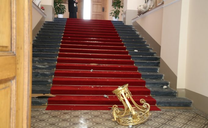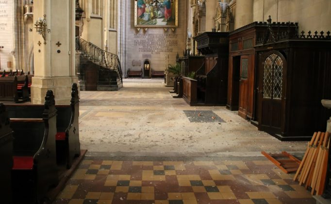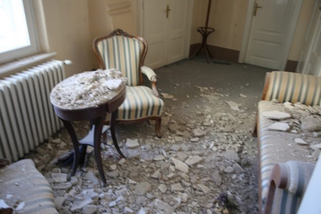 Nadbiskupski dvor pretrpio je veću štetu od katedrale čiji se križ s vrha lijevog tornja odlomio i pao na dvor.