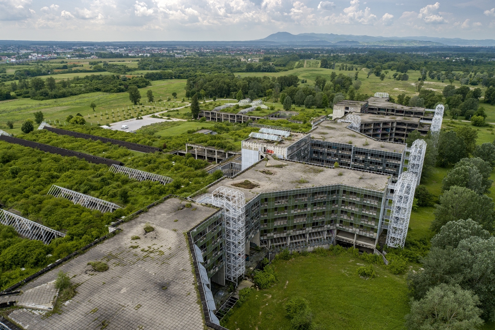 Reporteri Pixsella snimili su pogled s visine na nedovršenu bolnicu, a nažalost ne ulijevaju optimizam, niti nadu da bi se uskoro u bolnici na Blatu umjesto pokojeg glazbenika moglo naći medicinsko osoblje.