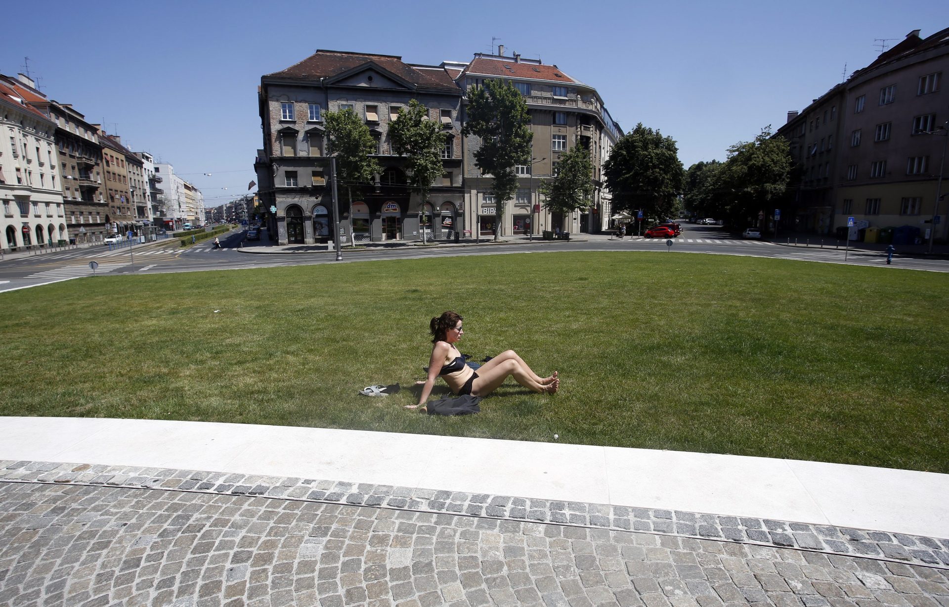 I dok se tako većina skrivala od vrućina ili su je pokušavali ublažiti, jedna je turistkinja odlučila iskoristiti izrazito sunčano vrijeme lagano se raskomotivši u samom centru grada. Vidno raspoložena, gospođa je ležala i sunčala se na zelenoj površini Trga žrtava fašizma.