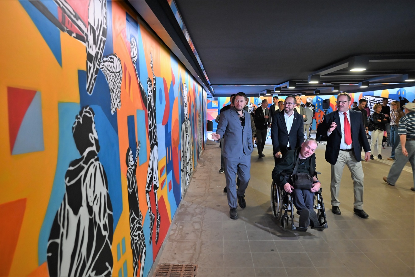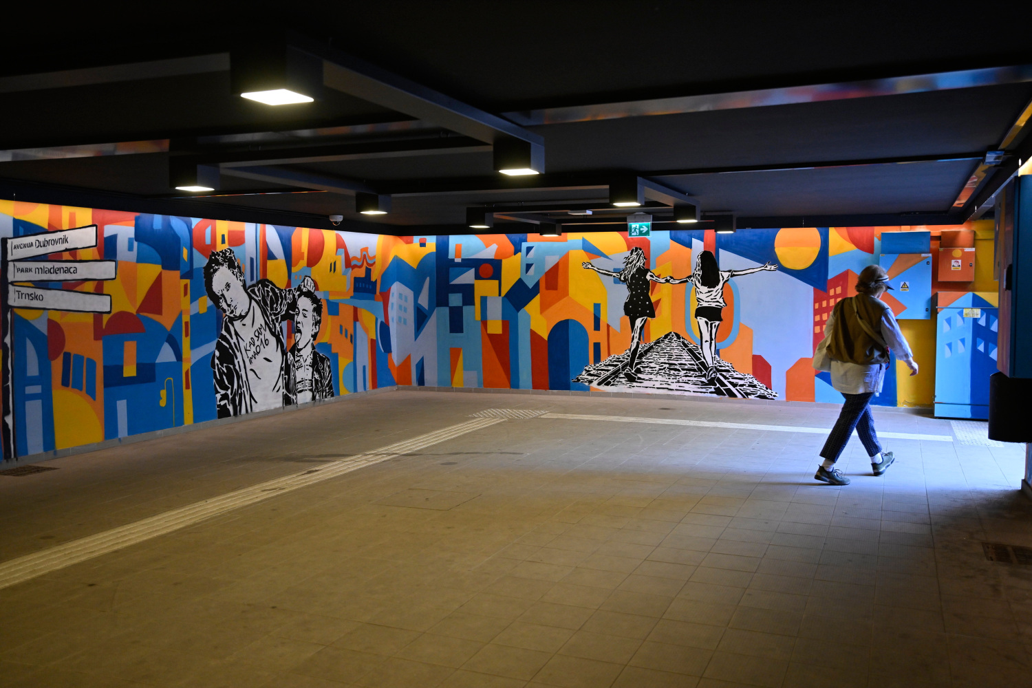 Gradonačelnik Grada Zagreba Tomislav Tomašević i zamjenik gradonačelnika Luka Korlaet predstavili su danas oslikani pothodnik u zagrebačkom naselju Trnsko koji je dobio mural prema kreativnom konceptu „Sjećanja na Trnsko“ kao hommage povijesti, ali i sadašnjosti kvarta s prikazom fotografija, legendarnih bendova, simbola poput zagrebačkog sata i sportaša povezanih s kvartom.