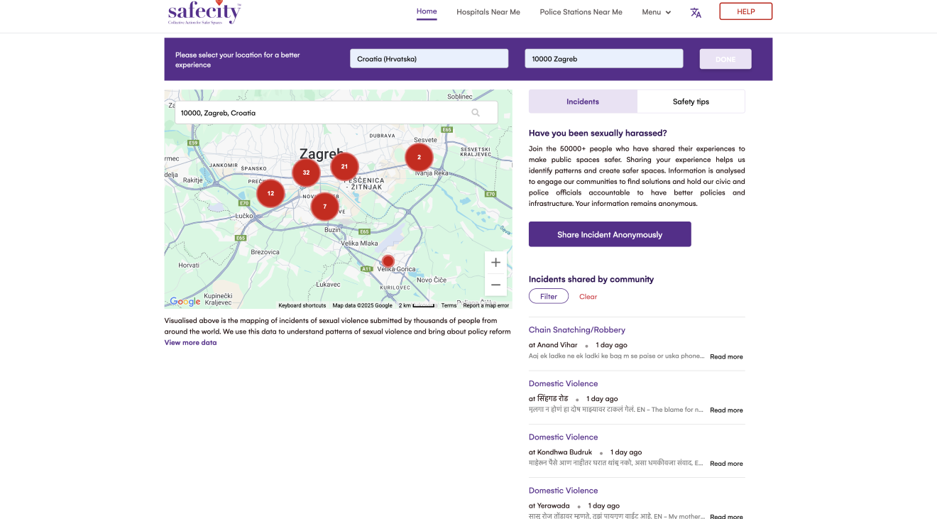 Na aplikaciji Safe City možete podijeliti svoje priče i vidjeti koja su mjesta na kojima se ponavlja ili događa nasilje, odnosno gdje sve ‘operiraju‘ nasilnici.