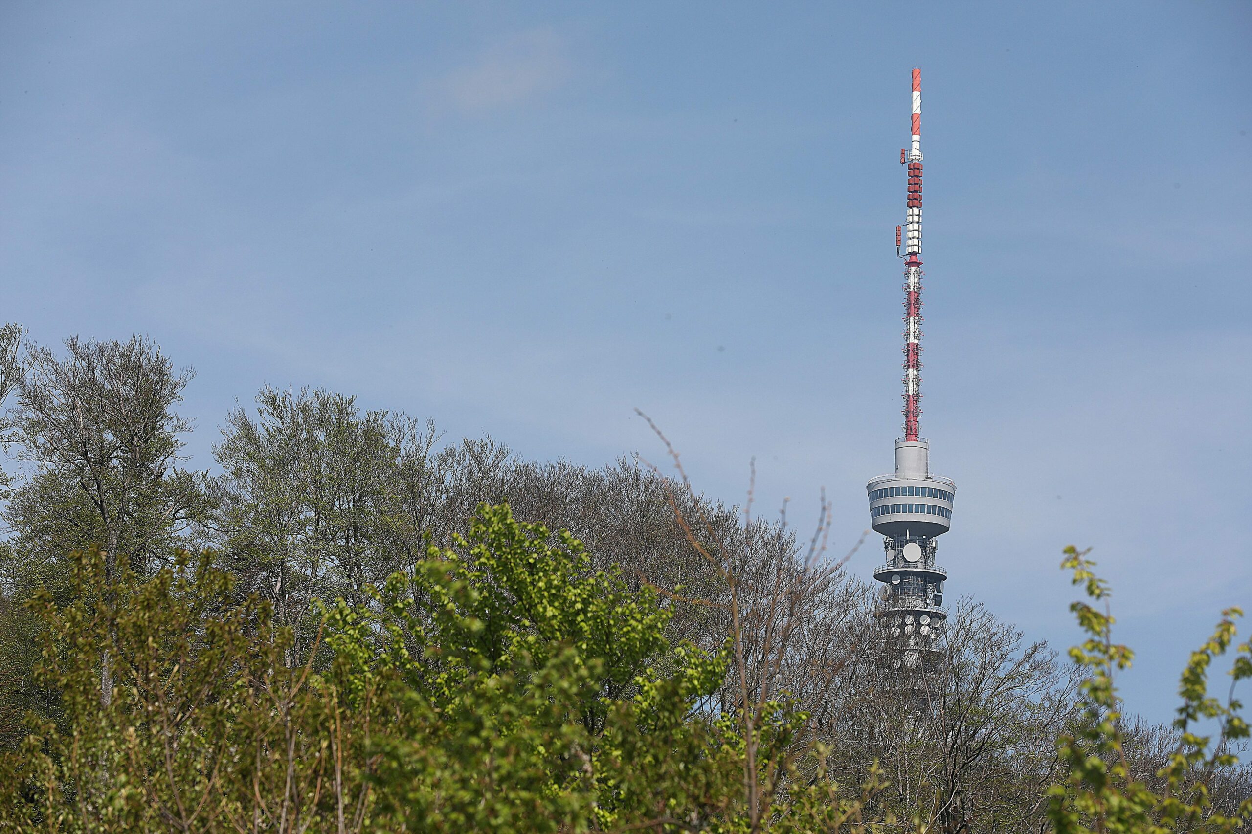 Toranj koji stoji i danas dovršen je u svibnju 1976., a njegova svrha je odašiljanje televizijskih i radijskih signala. Visok 169 metara, vidljiv je svima koji pogledaju prema Medvednici, pa je postao i jedan od simbola grada.