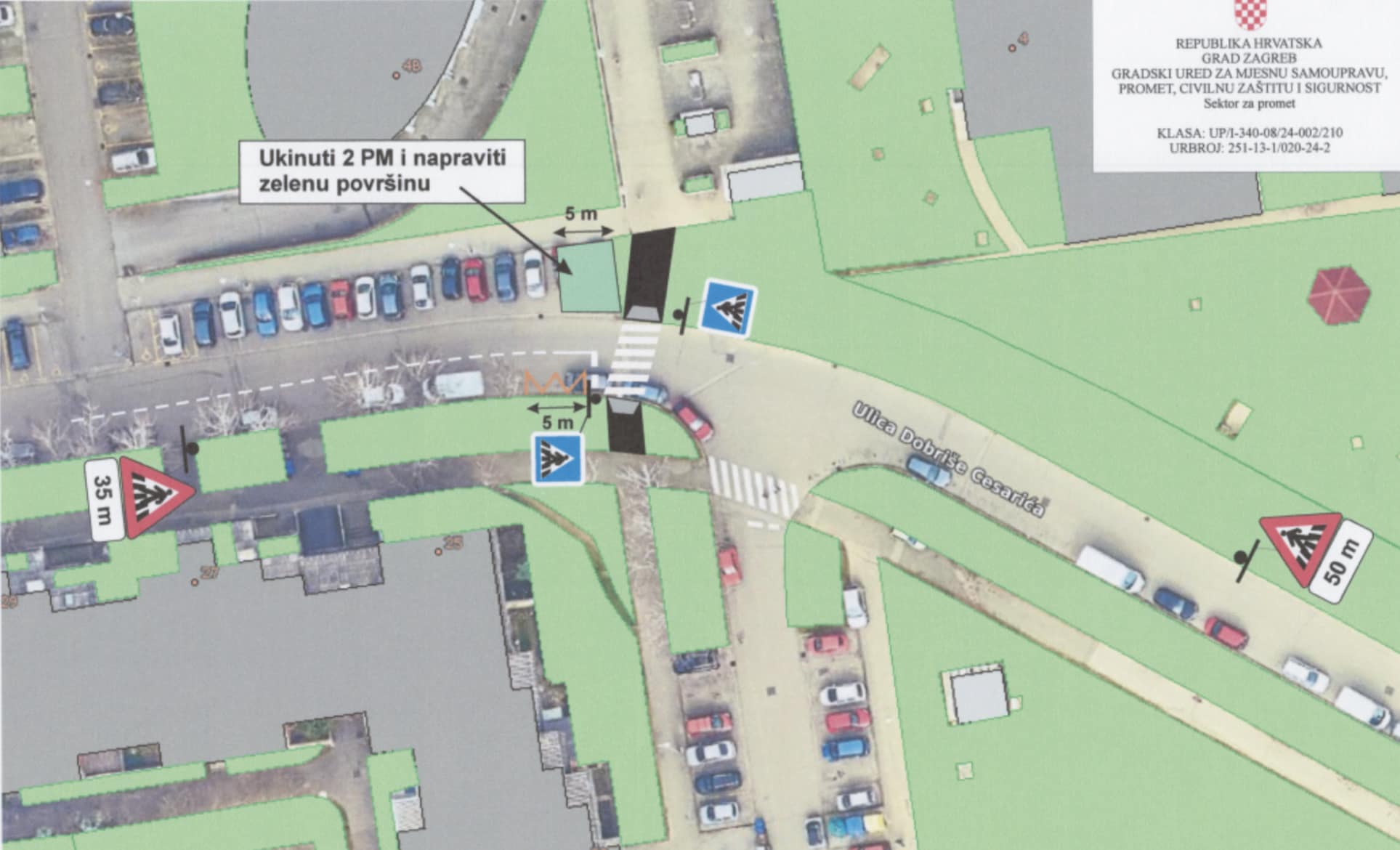 Na temelju zahtjeva Vijeća Gradske četvrti i nakon detaljne analize MUP-a, doneseno je rješenje o uspostavi pješačkog prijelaza u ulici Dobriše Cesarića u zagrebačkom naselju Špansko u neposrednoj blizini vrtića.