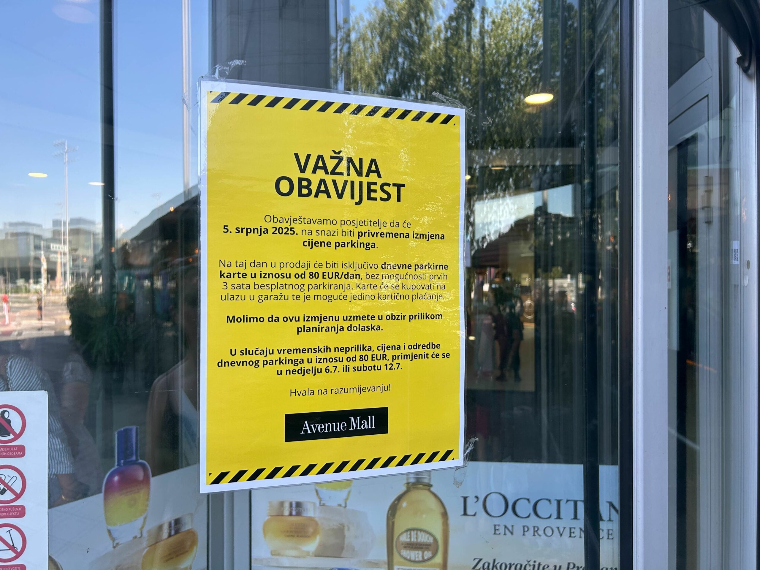 Prije mjesec dana Avenue Mall najavio je da će u subotu 5. srpnja, na dan Thompsonovog koncerta na Hipodromu, promijeniti cijenu parkinga. Svi koji žele parkirati u garaži morat će platiti dnevnu kartu od 80 eura. Karte će se moći kupiti na ulazu, isključivo karticama. Inače je u centru parkiranje besplatno prva tri sata, a nakon toga se naplaćuje po satu.
