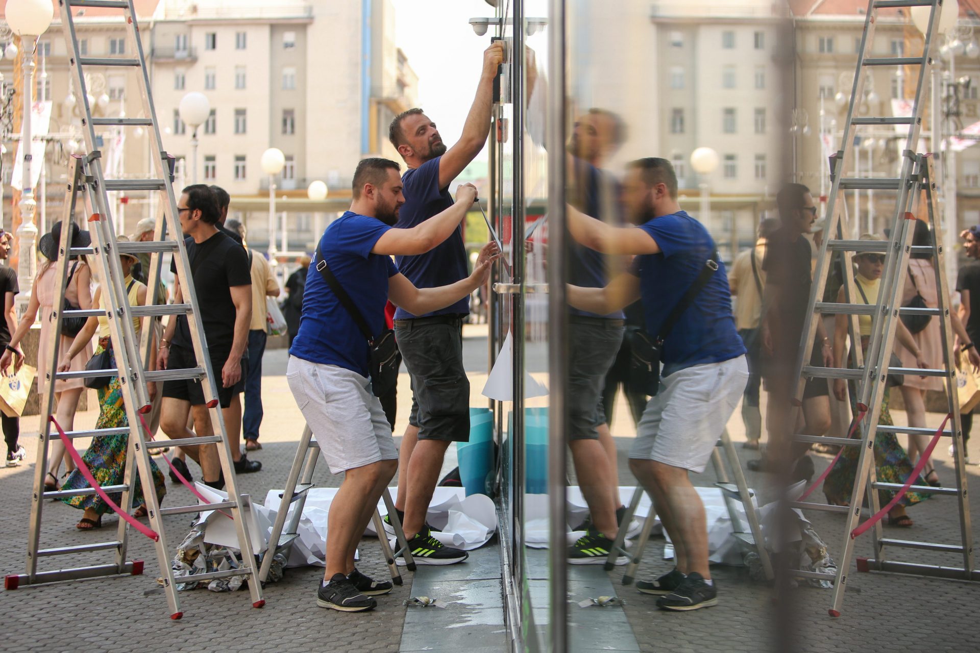 Samo stotinjak metara dalje, na glavnom gradskom trgu, situacija nije baš tako idilična. Sunce i asfalt u kombinaciji nisu baš najsretnije rješenje na ovakvim temperaturama pa mnogi sugrađani improviziraju kako bi se zaštitili od sunca.