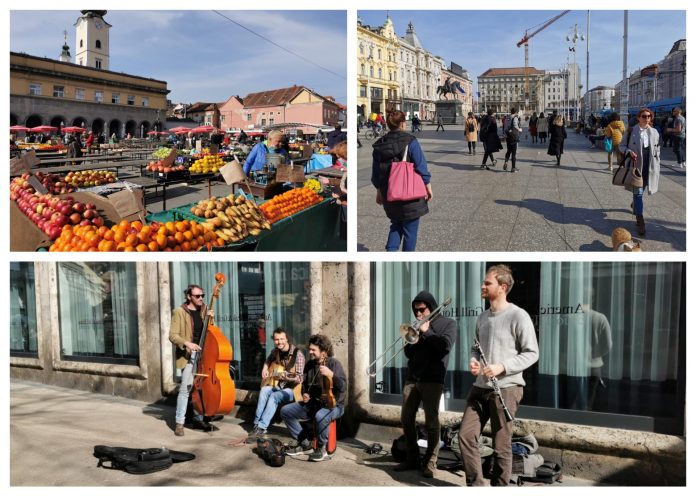 Lijepa atmosfera nastavila se na Trgu bana Jelačića. Prolaznici opušteno prolaze suncem okupanim glavnim zagrebačkim trgom.