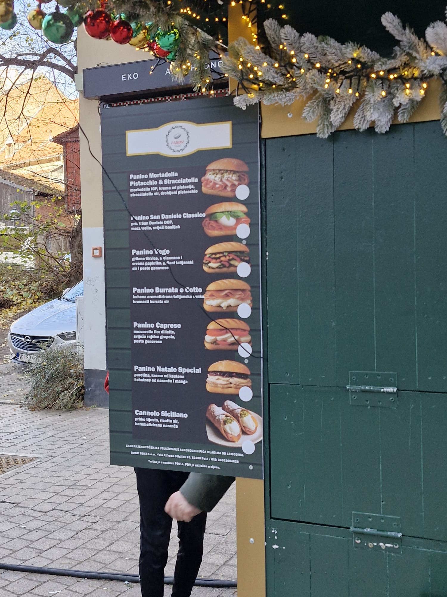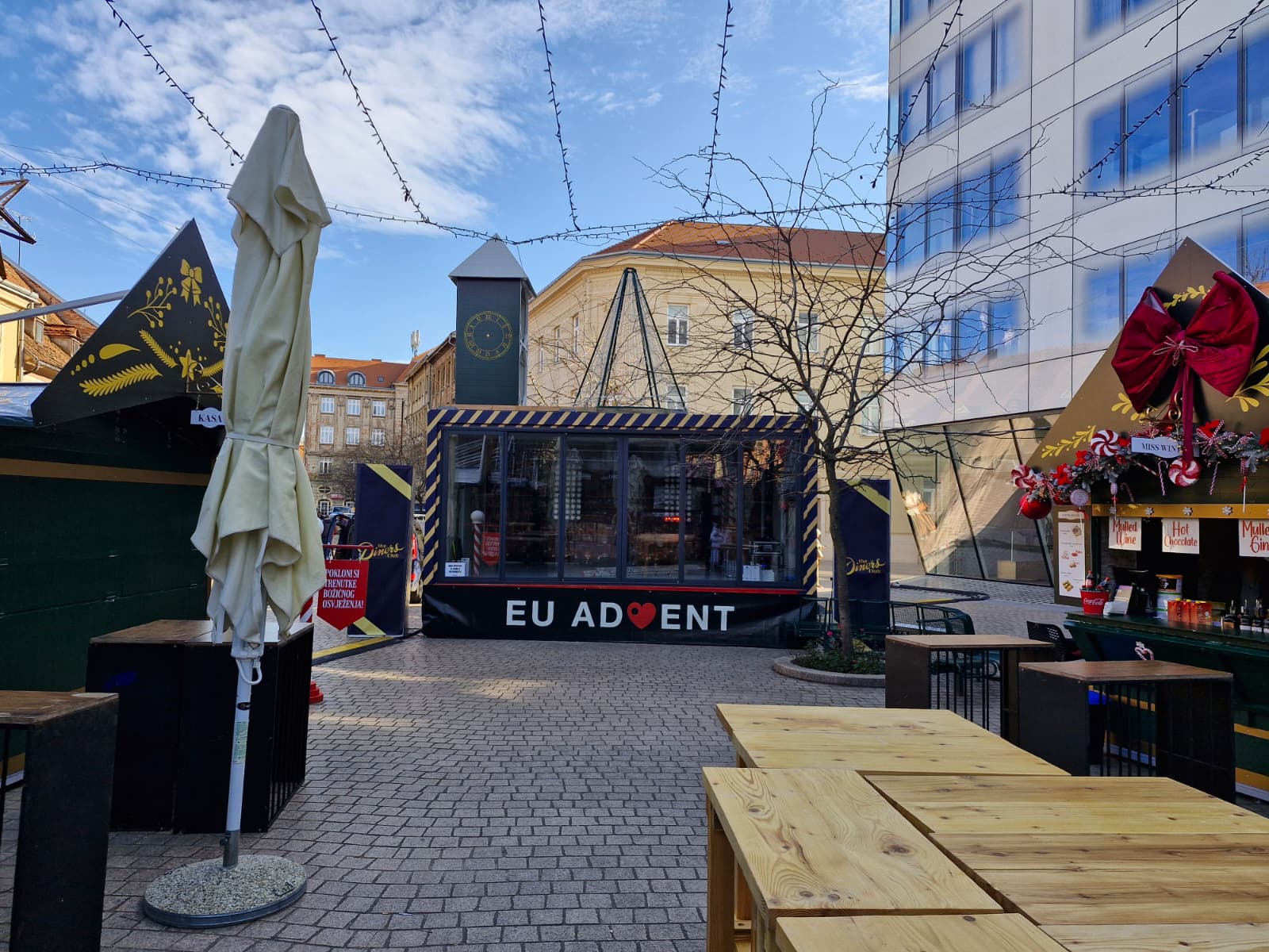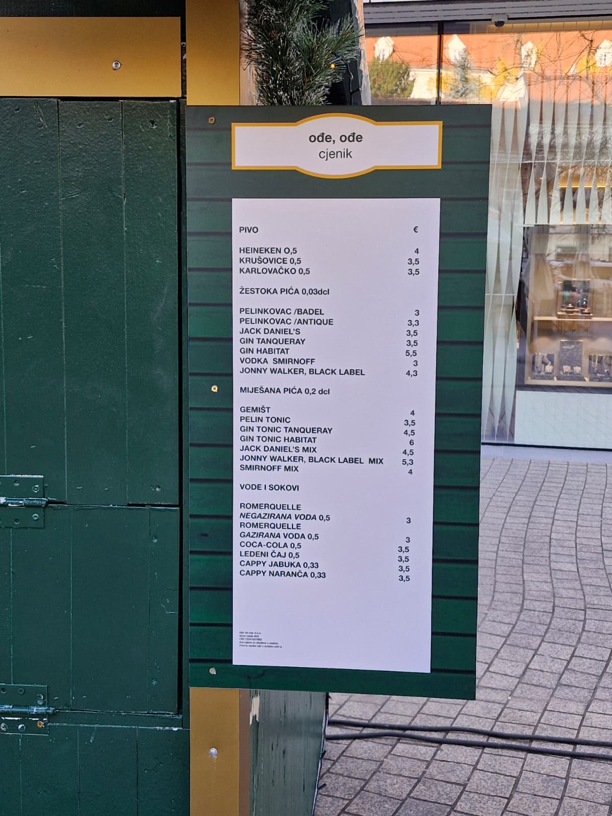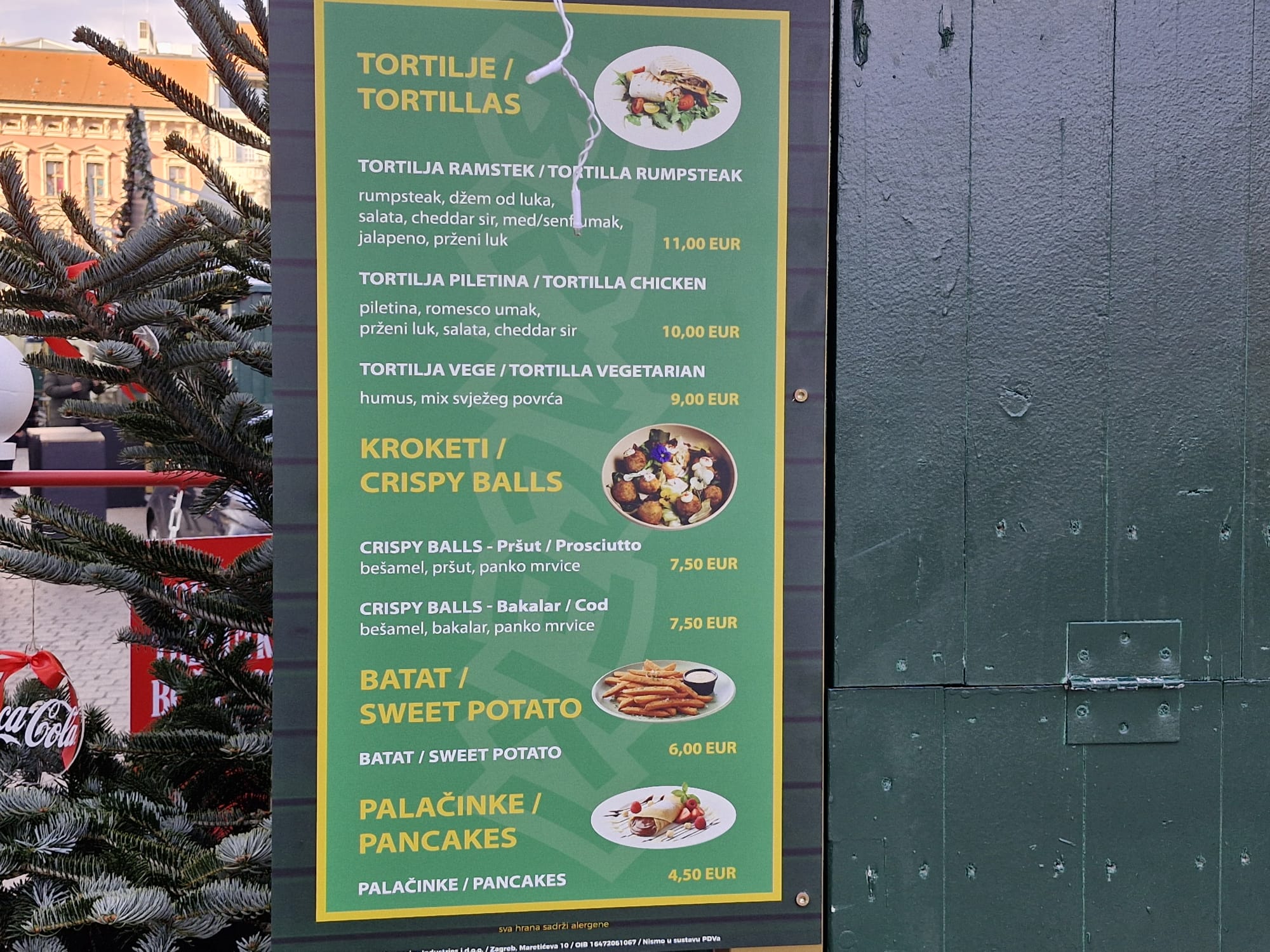 Od mesnih delicija, hamburgera i ostale hrane, cijene za sada nisu označene. Ponuda je tu, ali u prostoru gdje treba stajati brojčana vrijednost nema ničega. Djelatnici na kućicama uglavnom ignoriraju znatiželjne građane koji fotografiraju očito najvažnije cjenike u gradu. Barem u vrijeme Adventa. Nastavite li pak Europskim trgom prema zapadu, doći će te na Trg Bana Jelačića.