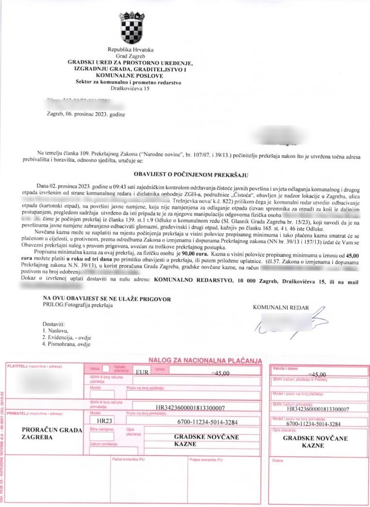 Jedan građanin požalio nam se da je na njegovu kućnu adresu stigla neočekivana kazna komunalnog redarstva zbog kartonske kutije koja je ostavljena na livadi, a na kojoj je bilo njegovo ime.