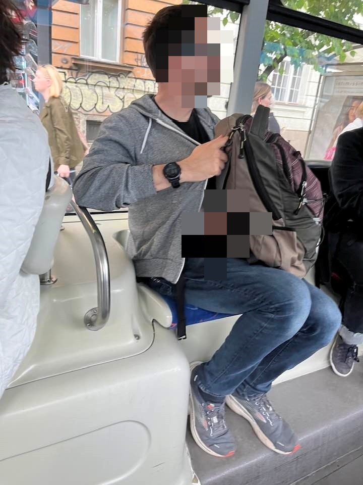 Izrazito neugodno iskustvo doživjela je jedna Zagrepčanka koja se jučer vozila tramvajem broj 17 na Savskoj cesti oko 9:17 sati. Na fotografiji koja je objavljena na društvenim mrežama vidi se muškarac koji se samozadovoljava u tramvaju.