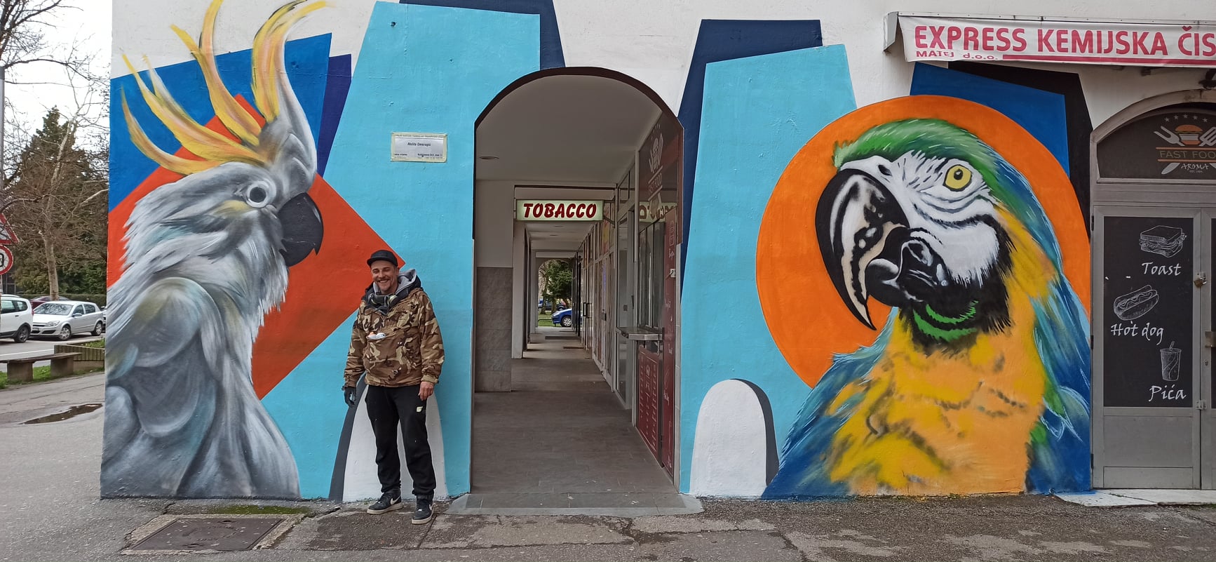 Mural koji prikazuje papige nalazi se na fasadi kompleksa zgrada u Voltinom, koje su zbog svojih šarenih fasada dobile naziv ‘papagajke’.